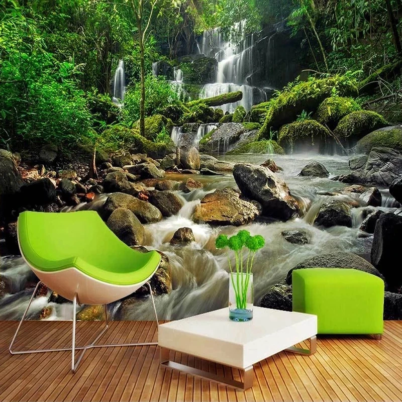 Самоклеящиеся обои на заказ, настенные комнатные обои с изображением водопада, зеленого природного ландшафта, для кабинета, гостиной, спальни, домашний декор, современные
