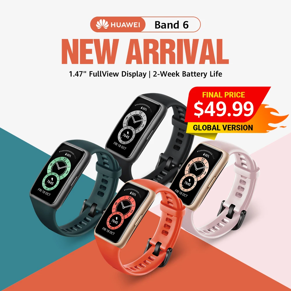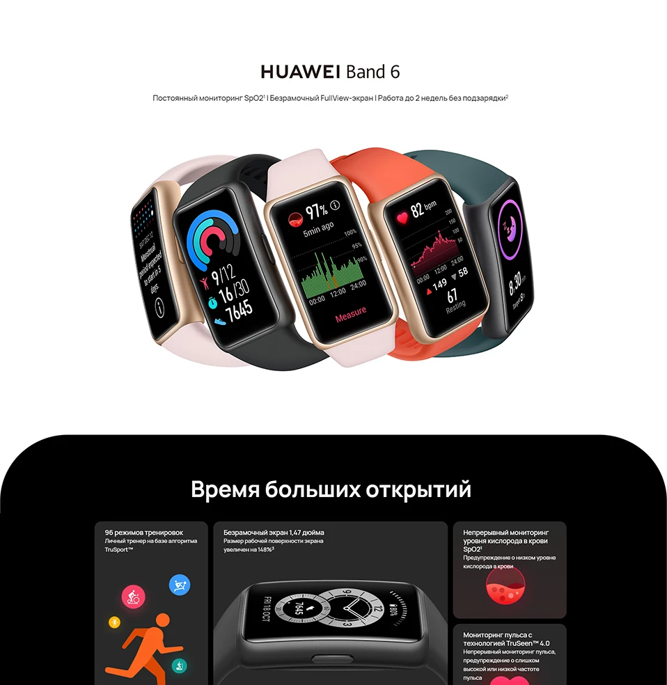 В наличии! Смарт-браслет HUAWEI Band 6, унисекс, глобальная версия дюйма, 2 недели в режиме ожидания, экран 1,47 дюйма