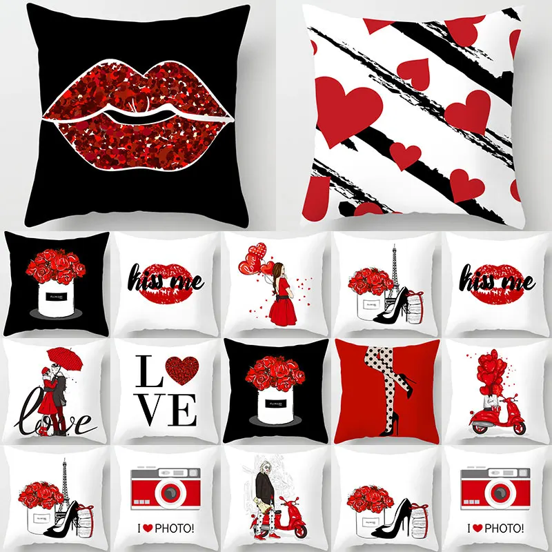 Красная роза подарки свадебные поцелуй с рисунком в виде надписи "любовь" 43*43 см для ухода за ребенком для мам украшения чехол для подушки из полиэстера улицы декоративная подушка Автомобильная HomeSofa декоративные 40904