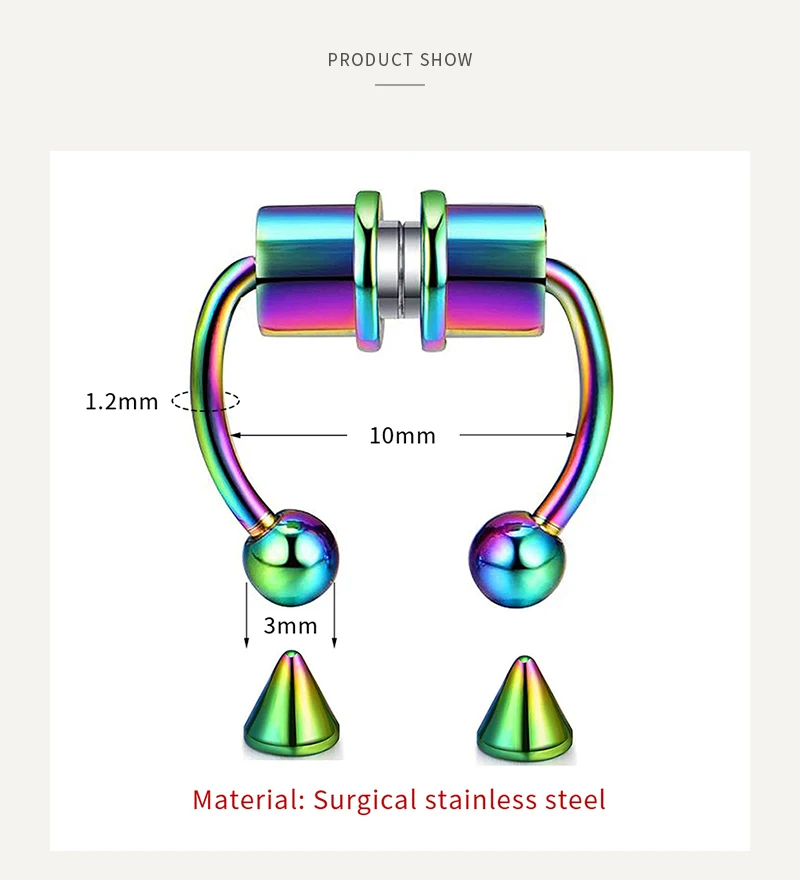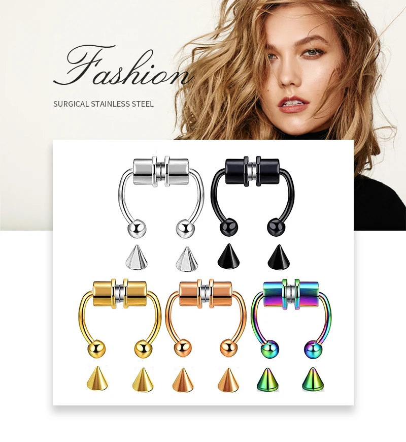 Магнитный фальшивый нос из нержавеющей стали, кольцо в форме подковы из титановой стали, искусственное неперфорированное кольцо в нос