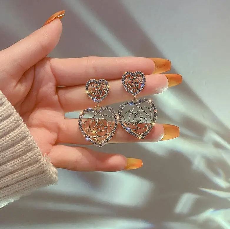 Женские металлические серьги, классические ажурные серьги в форме сердца, 2021