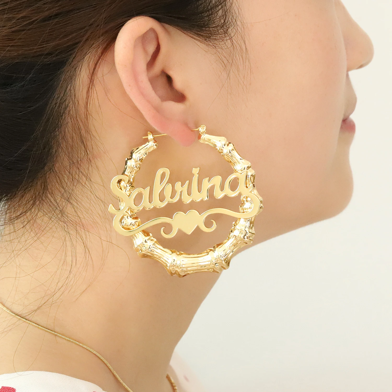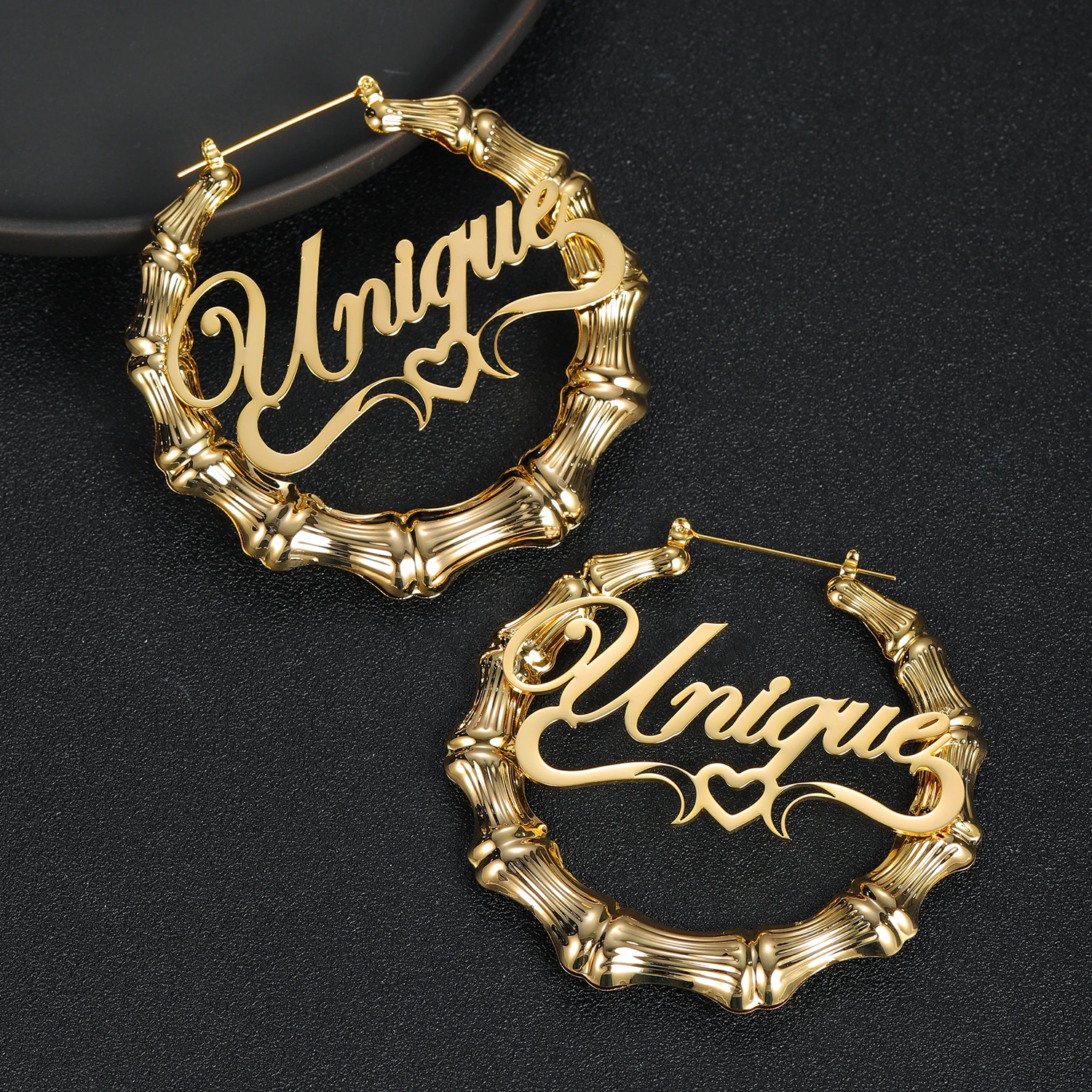 Бамбуковые серьги с именем, двухцветные позолоченные серьги из нерж...