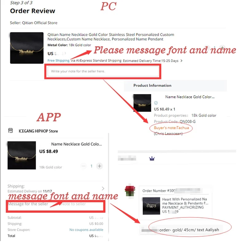 Qitian эмалевые ожерелья с арабским именем ювелирные изделия на зак...