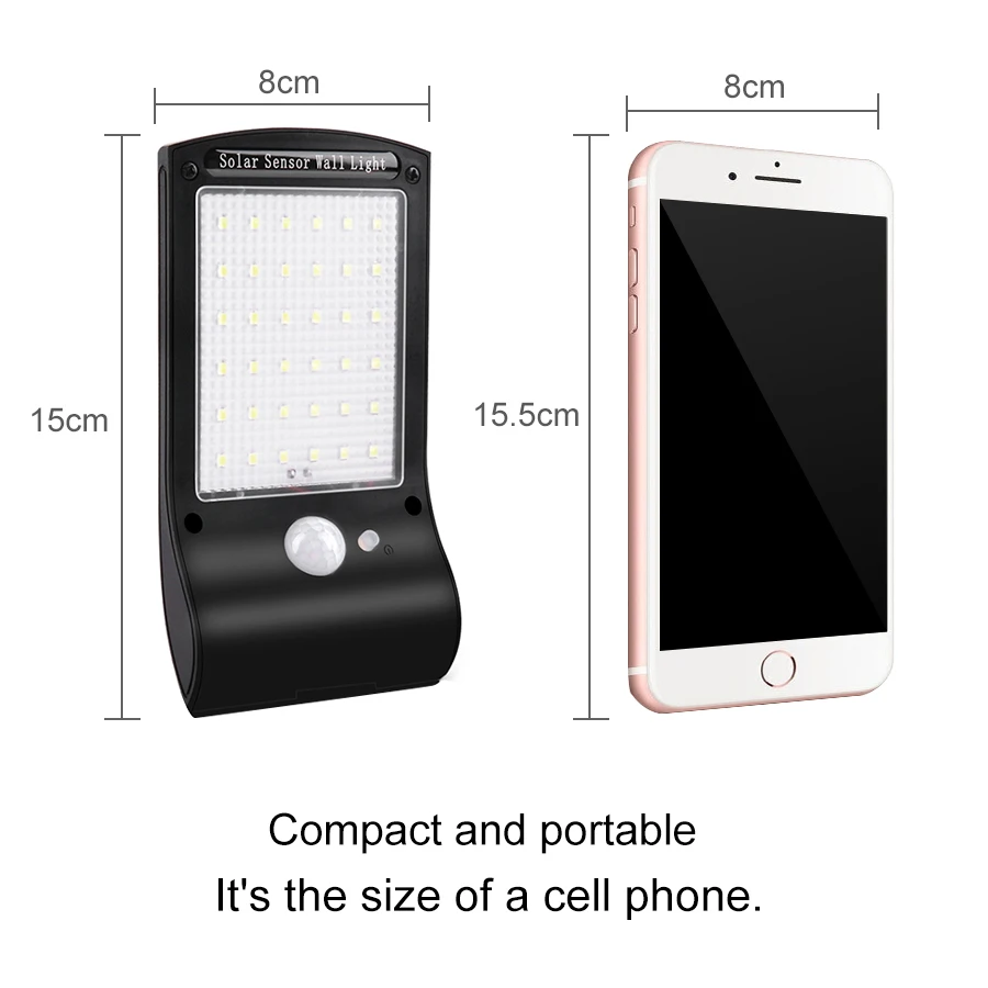 Ультра яркие 36 светодиодный ных солнечных ламп:Этот безопасный светильник намного ярче, чем другие аналогичные светильник пы, потому что он оснащен улучшенной мощностью 36 светодиодный ных лампочек. Благодаря профессиональному качеству он обладает сильным световым излучением даже после 12-месячного использования и обеспечивает безопасность вашего имущества на всю ночь.