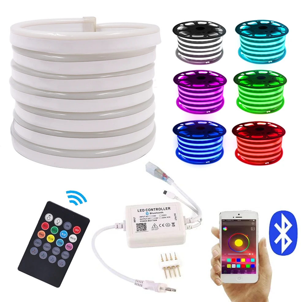Светодиодный ные неоновые полосы света WIFI Bluetooth управление RGB Неоновая Гибкая лента 120LED sM Водонепроницаемая неоновая веревочная трубка 2835 5050 220V неоновая вывеска