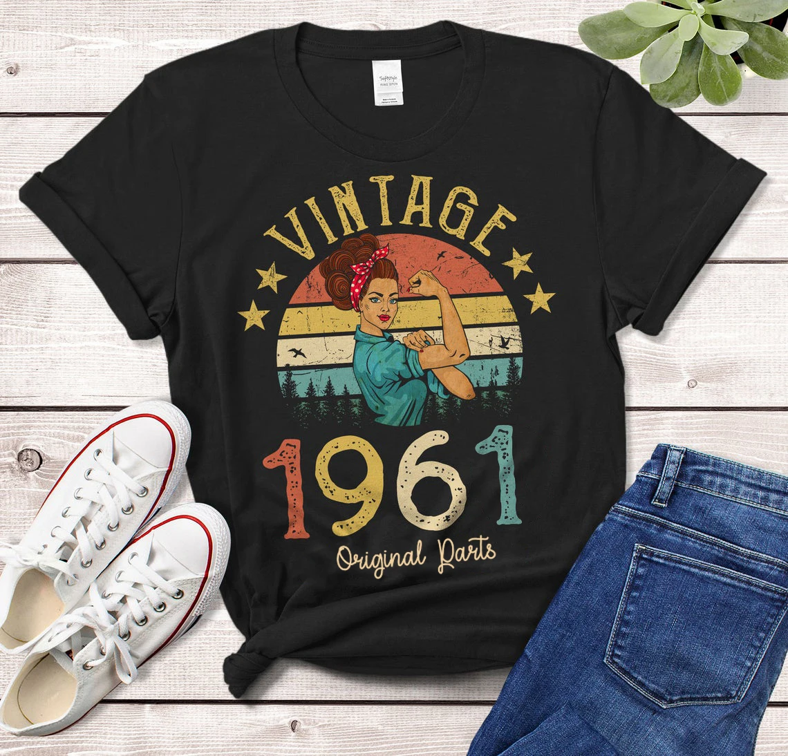 Футболка женская оригинальная в винтажном стиле, 61 год, 61 день рождения