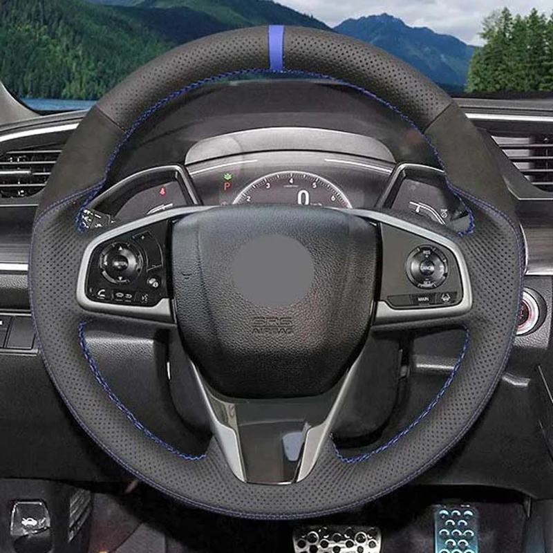 Чехол рулевого колеса автомобиля черного цвета из натуральной кожи и замши, для Honda Civic 10 2016-2021 таможенный приходной ордер CR-V 2017-2021 четкость 2016