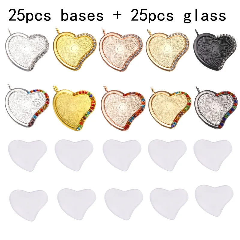 50 шт./компл. горный хрусталь ободок кулон база с принтом в виде сердец и Кабошон-камея стекло камень для ювелирных изделий DIY изготовления бус аксессуары Findings