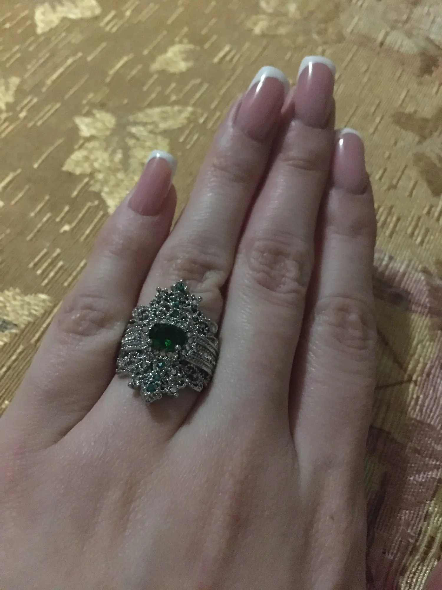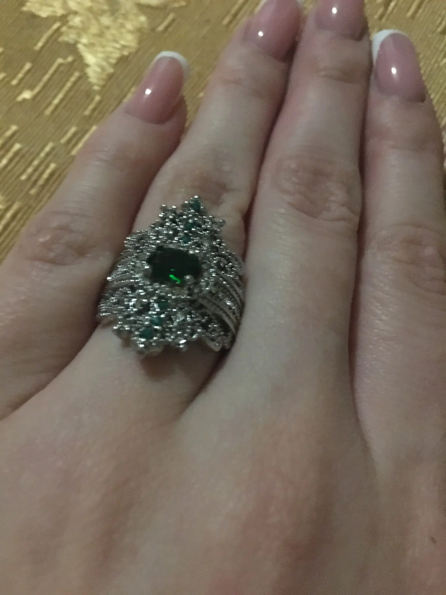 Женское кольцо на палец с перьями и зелеными кристаллами