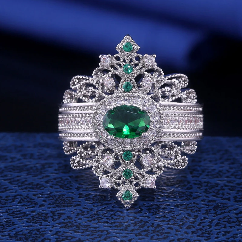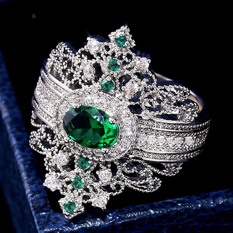 Женское кольцо в ретро-стиле, дизайнерское обручальное кольцо зелен...