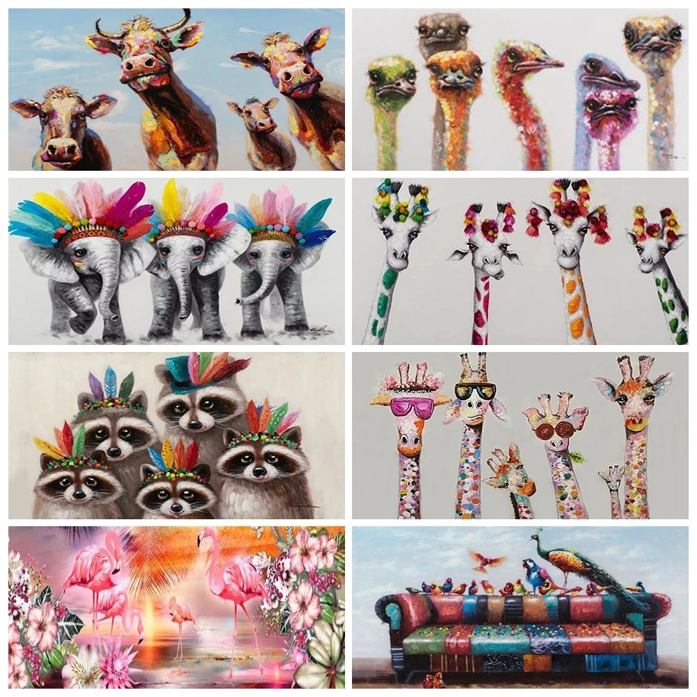 Полноразмернаякруглая Алмазная 5D картина сделай сам с изображением животных, фламинго, жирафа, страуса, алмазная вышивка, вышивка крестиком, домашний декор, искусство