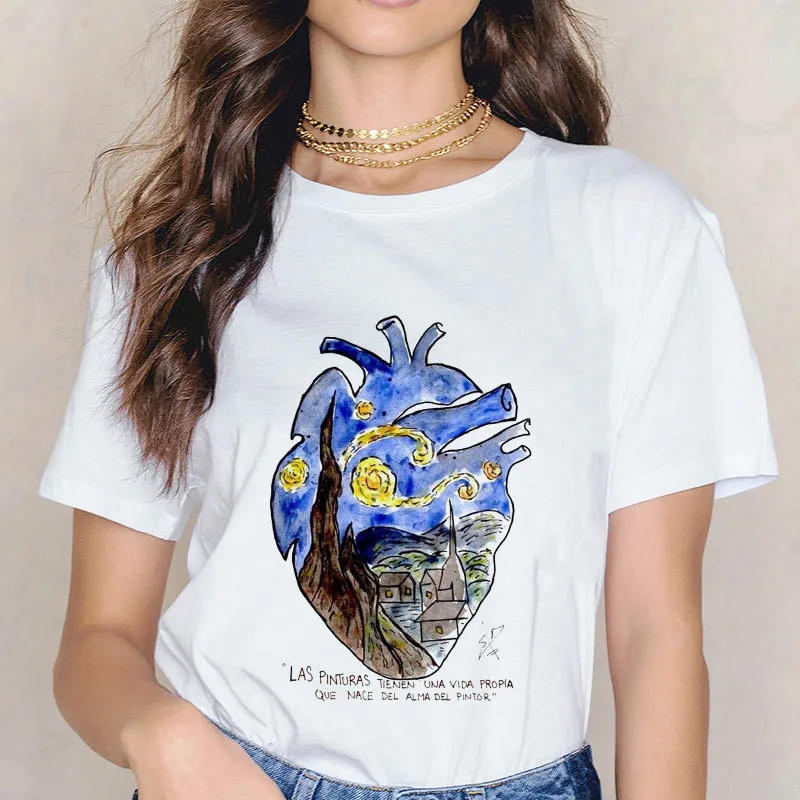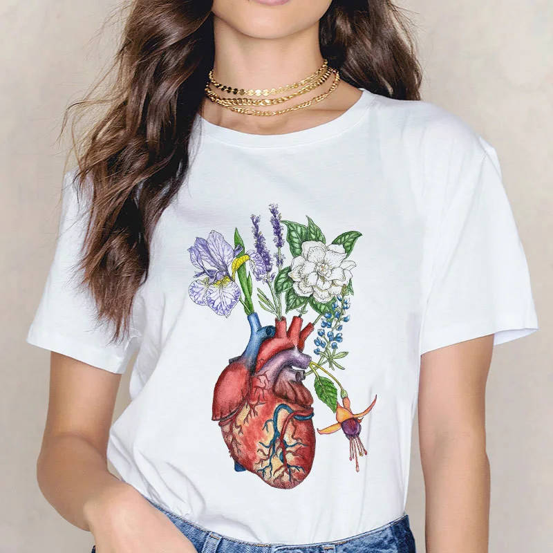 Футболка женская с абстрактным принтом, модная рубашка с принтом сердца и земли, эстетичная хипстерская футболка в стиле Харадзюку, лето