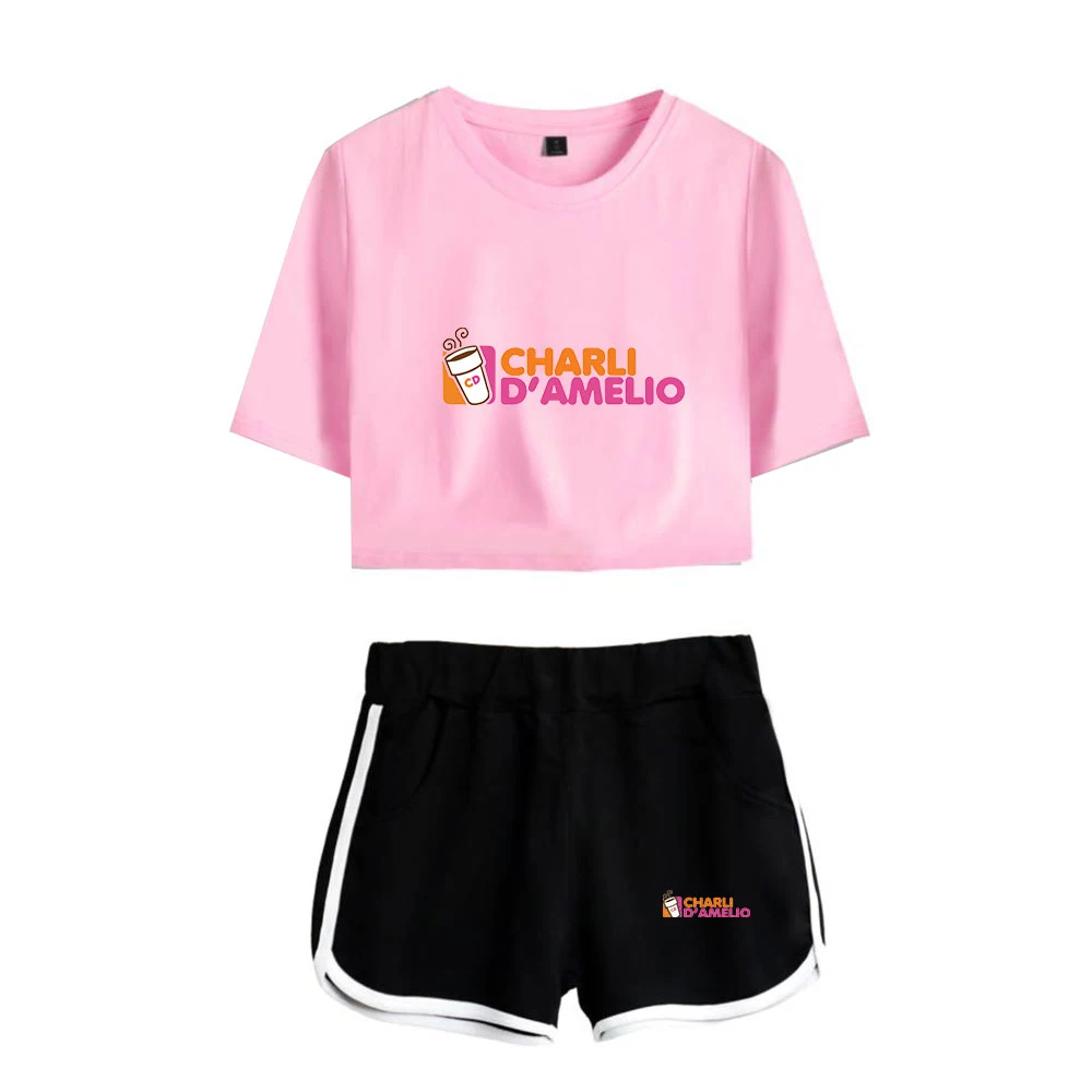 Горячая Распродажа Charli DAmelio ледяной кофе брызг Женский комплект из двух частей шорты + Милая футболка сексуальный charli damelio merch спортивный костюм для девочек
