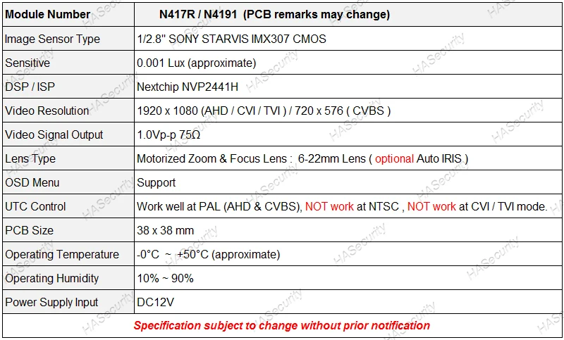 32x32 мм CVBS 12.8 "Sony STARVIS IMX307 CMOS + NVP2441 CCTV camera ...