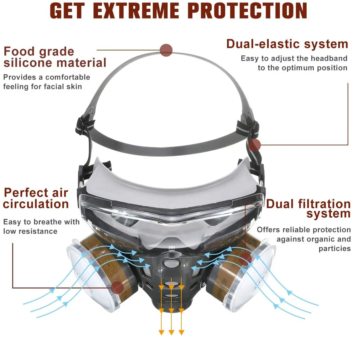 Защитная маска, полулицевой респиратор для защиты от химических веществ с фильтром, защитные очки, специальные очки для распыления краски, защита от органических паров