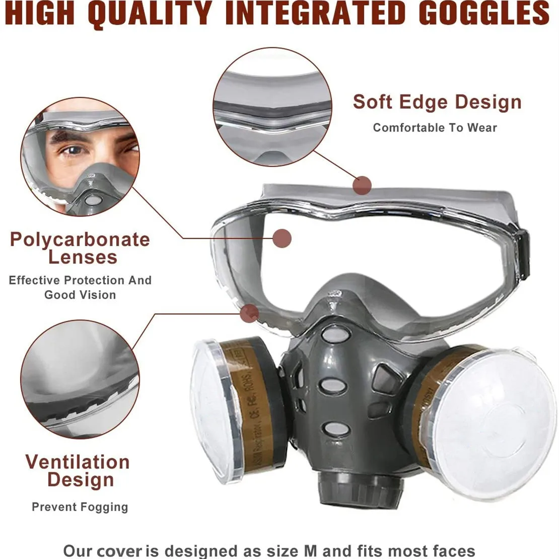 • Противогаз полумаска с очками интегрированный костюм, изготовлен из эластомерного материала, мягкий, удобный и прочный.• Принимается конструкция картриджа с двойным резервуаром. Картридж может быть изменен в зависимости от окружающей среды.• Высокая степень соответствия с формой лица, эффект уплотнения хороший• Высокая эластичная повязка на голову, используется в течение длительного времени. С хорошей эластичностью, прочностью и прочностью
