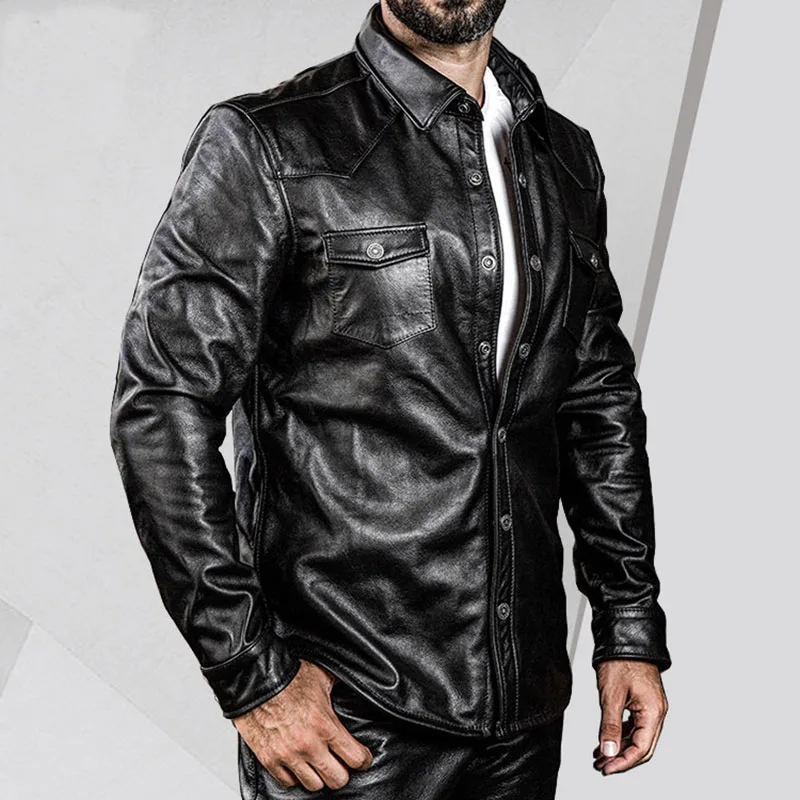 Мужская повседневная мотоциклетная рубашка, однослойная рубашка из воловьей кожи, весна-осень 2022