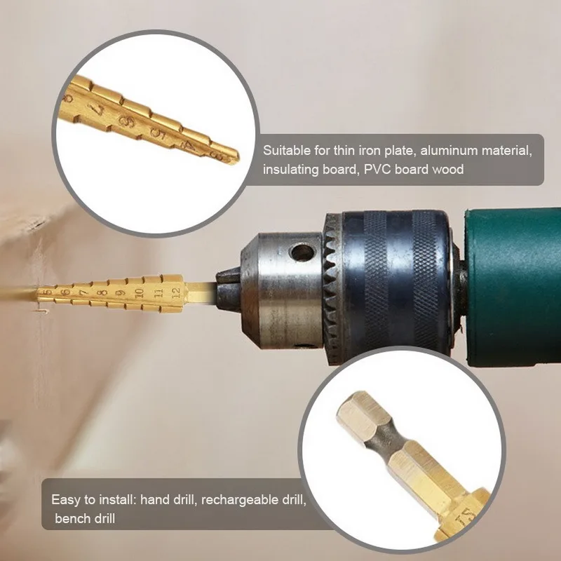 4Stepped Drill Bits 1/4 Hex Drill Bit Wood Metal Drilling Tool