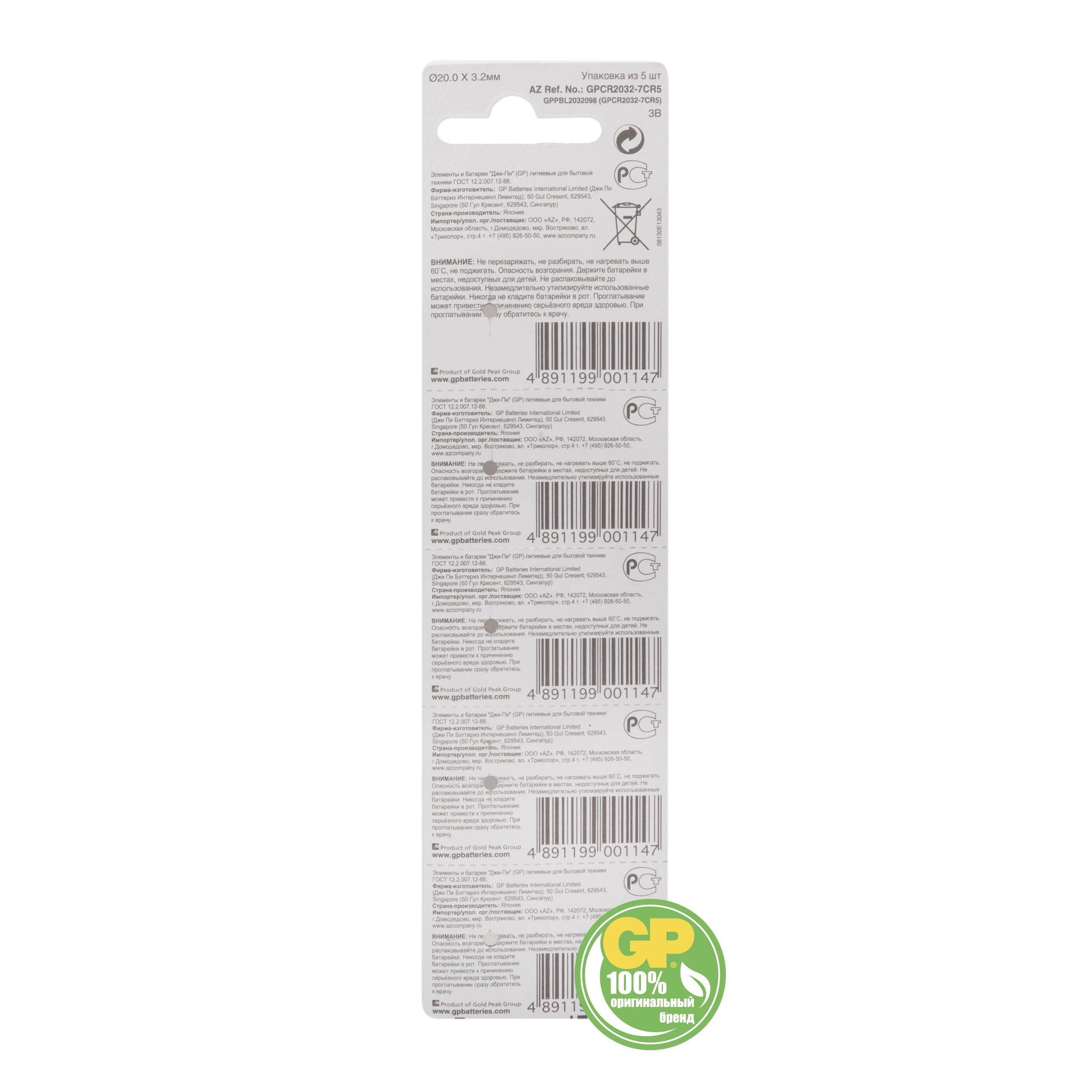 Батарейка GP Lithium CR2032-7C5, 5 шт, 220 мАч