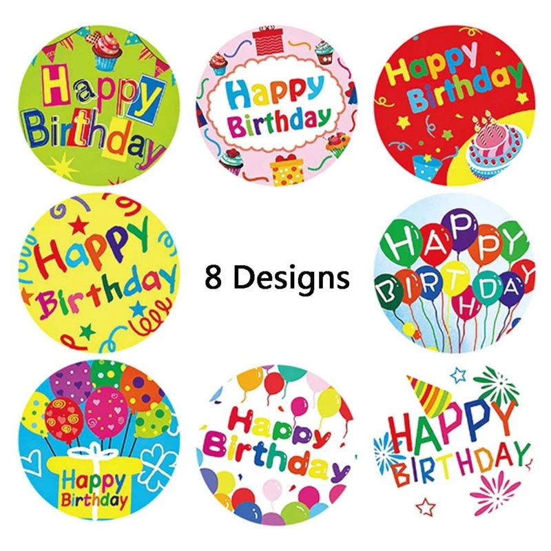 100-500 шт. милые стикеры "День рождения" 2,5 см1 дюйм из-Детское п...
