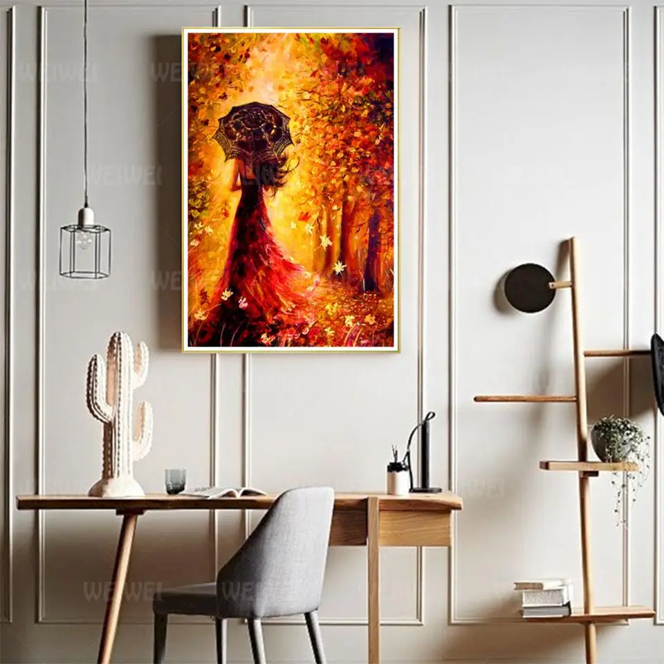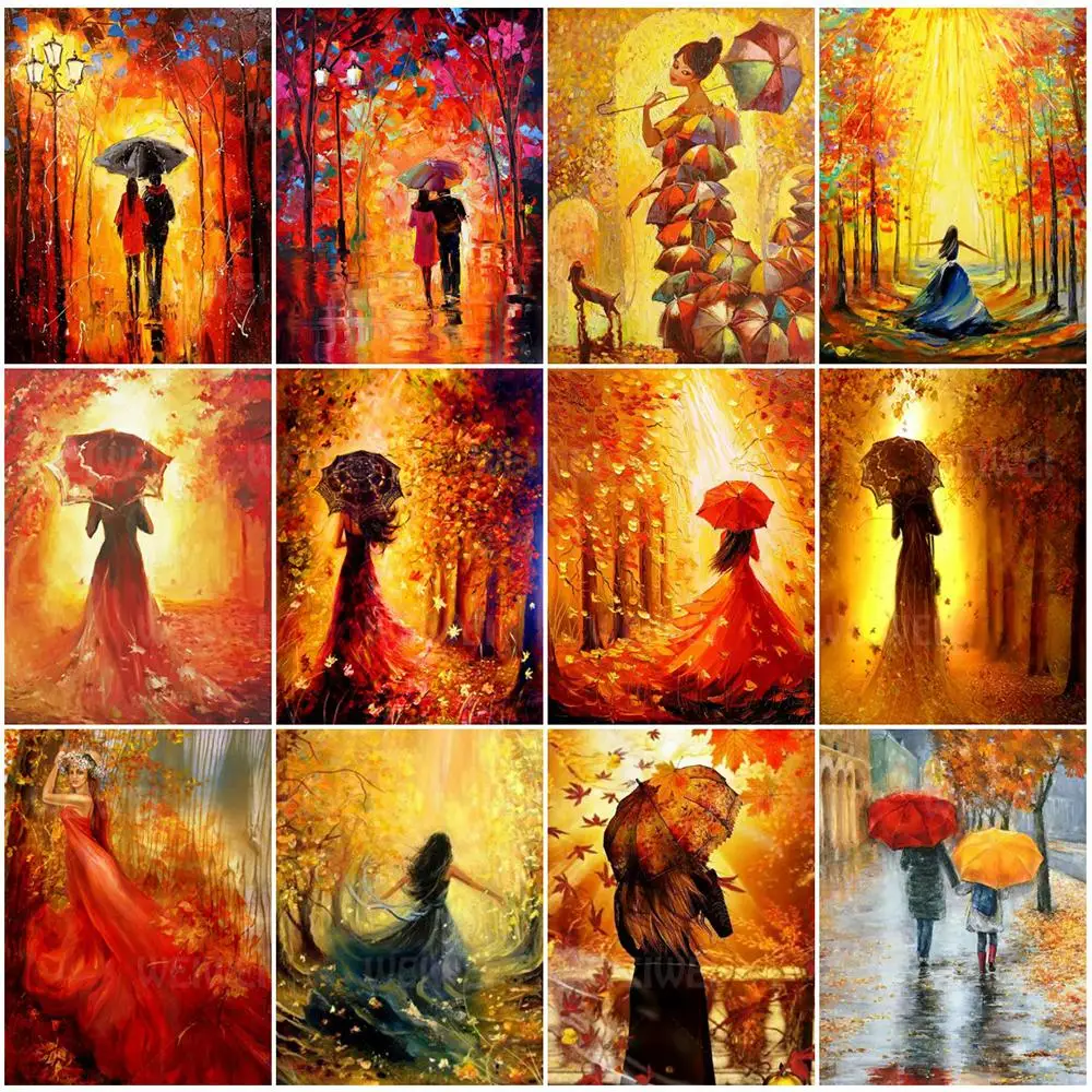 Картина для рукоделия, квадратная Женская Вышивка с зонтом, картина...