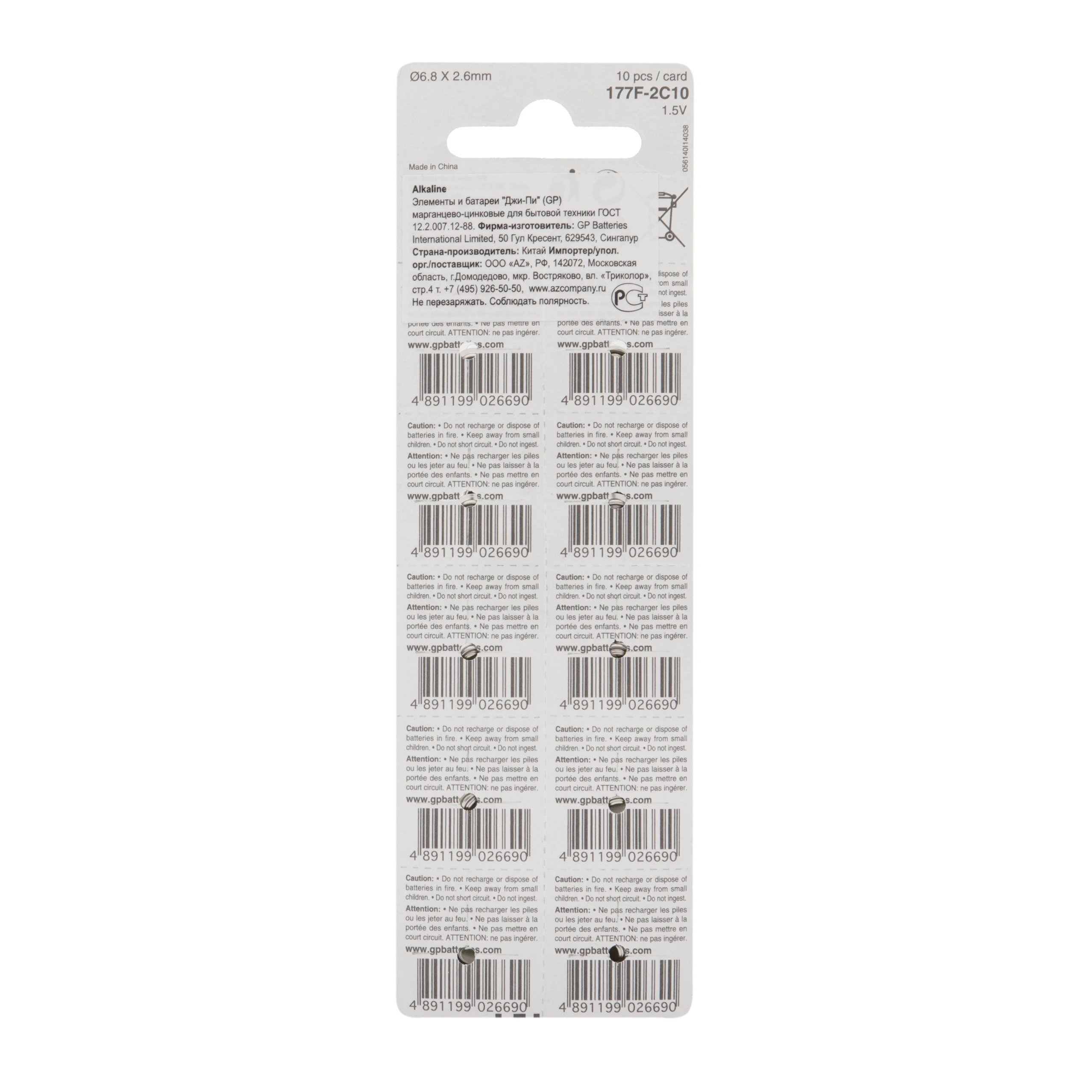 Алкалиновые батарейки GP 177FRA-2C10, 10 шт «дисковые» (LR626)