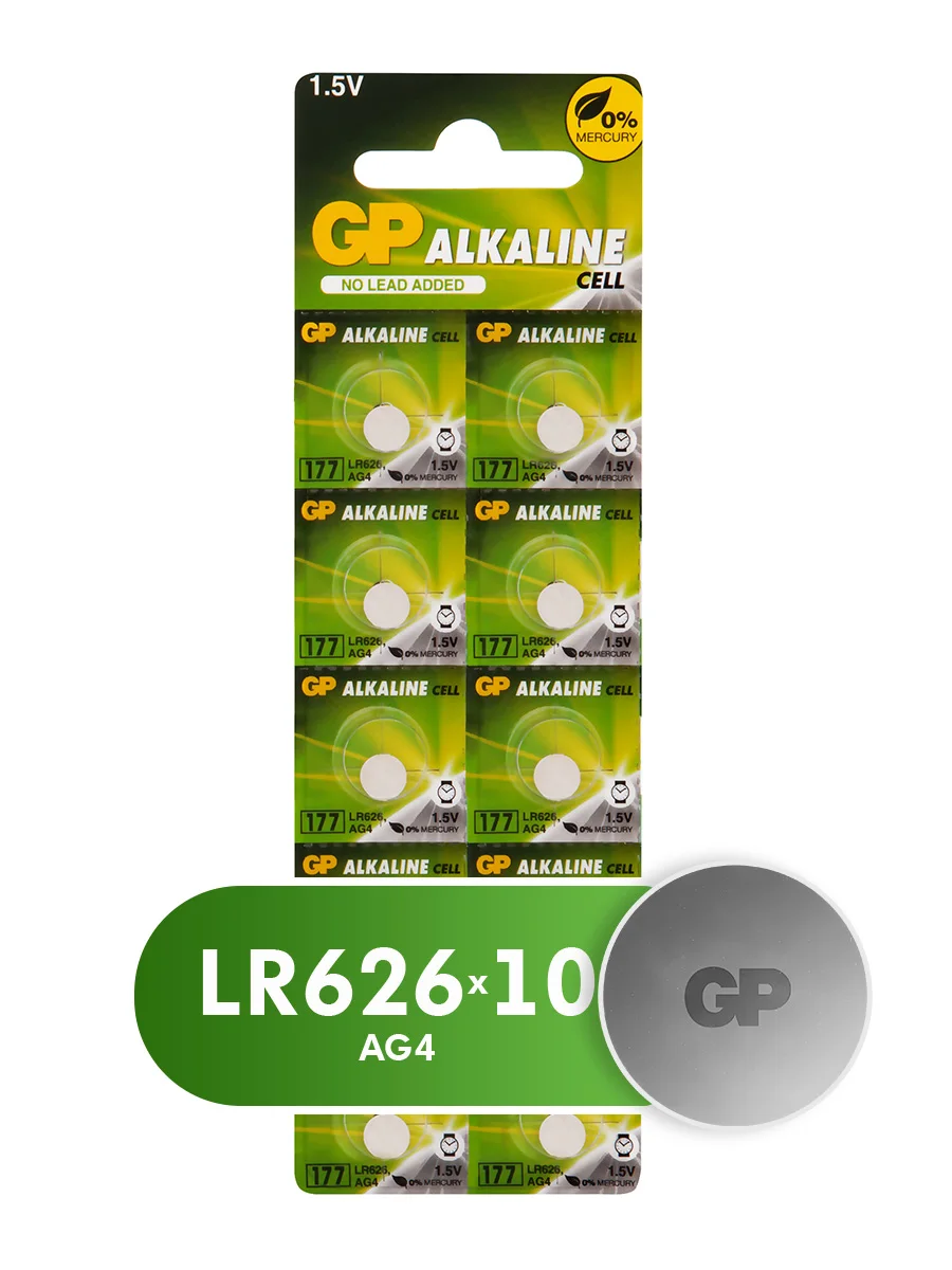 Алкалиновые (щелочные) батарейки GP (LR626) в наборе 10 шт (177FRA-2C10)