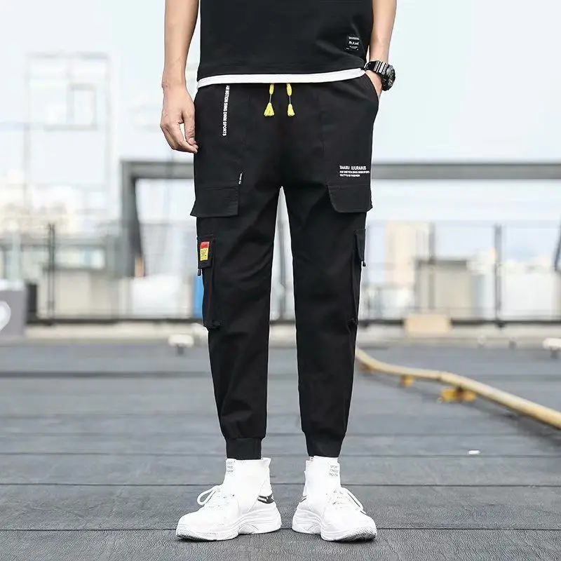 Джоггеры-шаровары с лентами, мужские брюки-карго, уличная одежда 20...