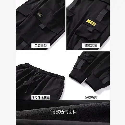 Брюки спортивные мужские, черные, в стиле хип-хоп, весна 2021