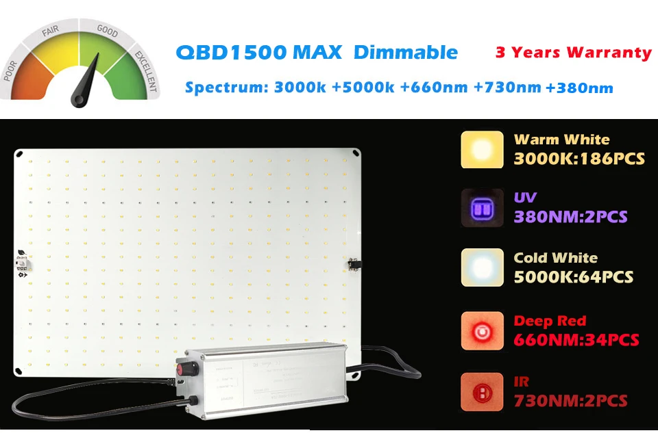 Артикул: QBD1500 MAX (с регулируемой яркостью и переключателем veg/bloom)