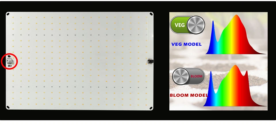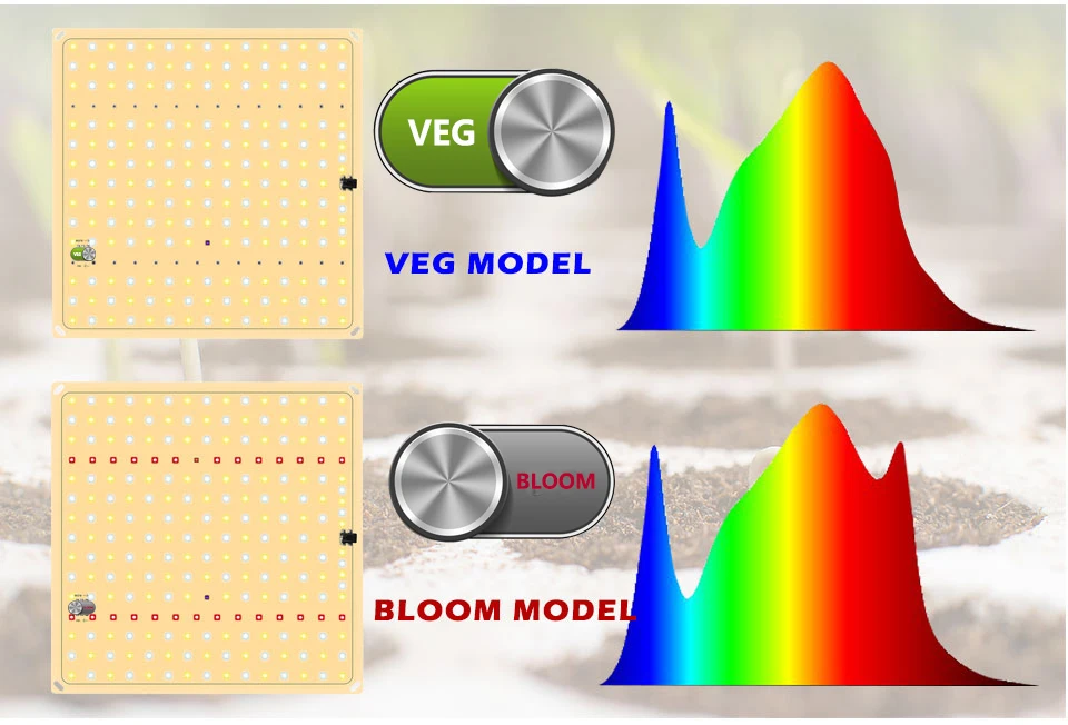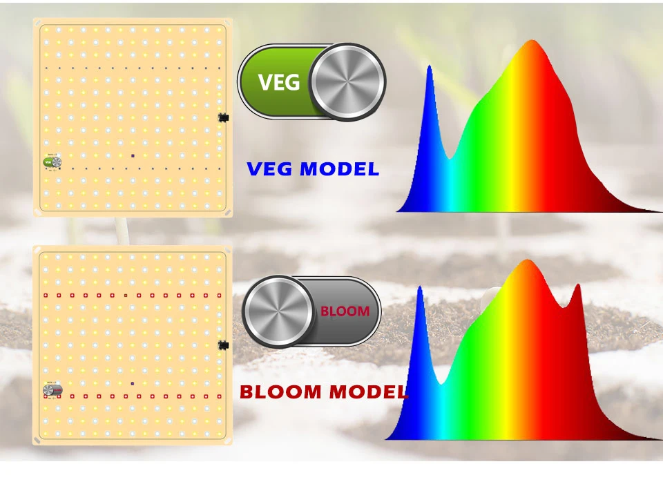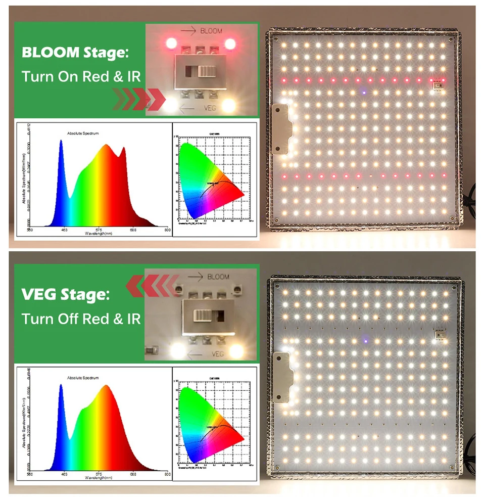 Спектр: 3000K + 5000K + 660NM + 730NM + 380NM3000K: теплый белый5000K: холодный белый660нм: темно-красный730 нм: инфракрасный380нм: УФФактическая мощность: 65-70 ВтКомплект с водителем из водонепроницаемого алюминияХарактеристики: Светодиодный переключатель на плате, вы можете изменить модель VEG и BLOOM