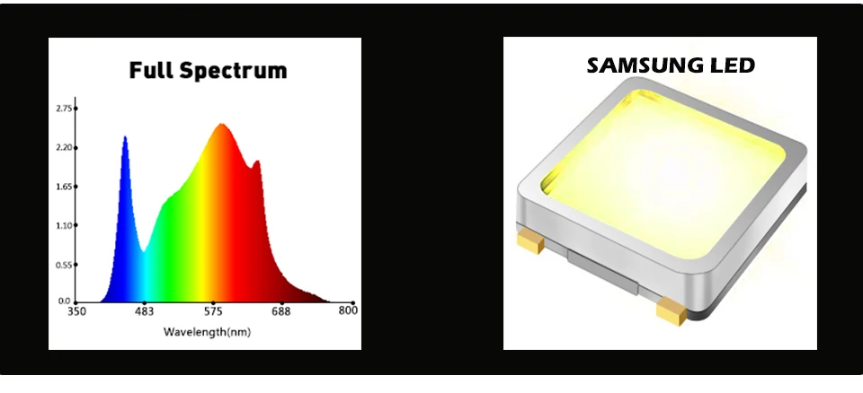 Спектр: 3000K + 5000K + 660NM + 730NM + 380NM3000K: теплый белый5000K: холодный белый660нм: темно-красный730 нм: инфракрасный380нм: УФ