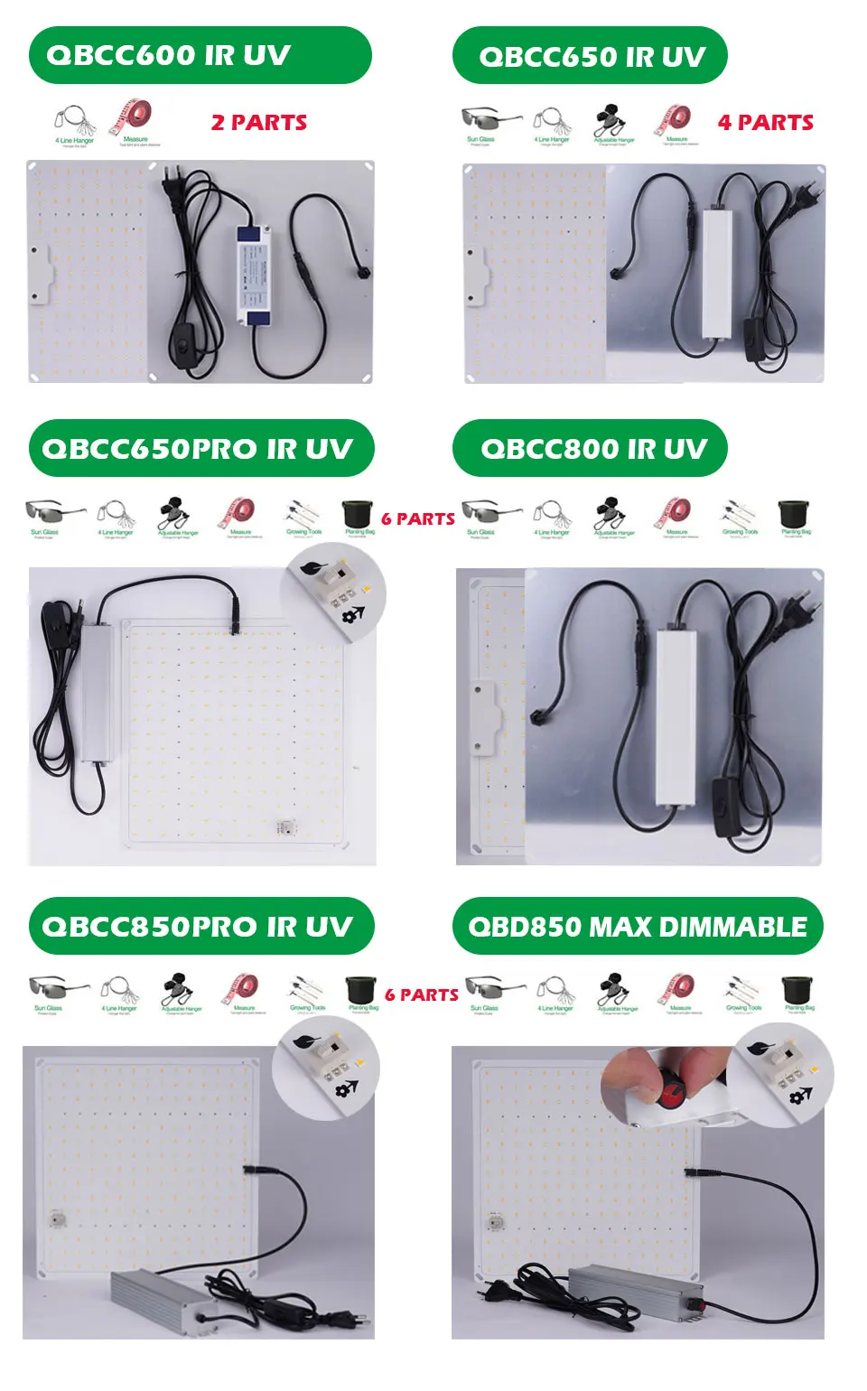 Светодиодный светильник для выращивания имеет много серий, пожалуйста, сначала просмотрите видео и описание и выберите подходящий для вас светильник.QBCC600 led grow light выходная мощность 50 Вт-55 Вт, мы выбираем samsung leds с высокой осенью и ppdf, мы предлагаем использовать его для посева стадии культивирования. Если площадь вашего выращивания составляет всего 3x3 фута, вы можете использовать светодиодный светильник мощностью 600 Вт для выращивания, от посева до цветения.QBCC650 led grow light выходная мощность составляет 65 Вт-70 Вт, мы выбираем samsung leds с высоким уровнем осени и ppdf, мы предлагаем использовать его для стадии посева. Если площадь вашего выращивания составляет всего 4x4 фута, вы можете использовать светодиодный светильник мощностью 650 Вт для выращивания, от посева до цветения.QBCC800 led grow light выходная мощность 78 Вт-80 Вт, мы выбираем samsung leds с высокой осенью и ppdf, мы предлагаем использовать его для посева стадии культивирования. Если ваша растущая площадь составляет всего 5x5 футов, вы можете использовать светодиодный светильник мощностью 800 Вт, от сеялки до стадии цветения.QBCC850 PRO led grow light выходная мощность 85 Вт-90 Вт, мы выбираем samsung leds с высокой осенью и ppdf, мы предлагаем использовать его для посева стадии культивирования. Если ваша растущая площадь составляет всего 5x5 футов, вы можете использовать светодиодный светильник мощностью 850 Вт, от посева до цветения.QBD850 MAX led grow светильник выходная мощность 85 Вт-90 Вт, принимает 0-10 В затемнения. Мы выбираем samsung leds с высокой осенью и ppdf, мы предлагаем использовать его для посева стадии культивирования. Если ваша растущая площадь составляет всего 5x5 футов, вы можете использовать светодиодный светильник мощностью 850 Вт, от посева до цветения.F1000 RPO led grow light выходная мощность 105W-110W, мы выбираем samsung leds с высокой осенью и ppdf, мы предлагаем использовать его для сеялки стадии культивирования. Если площадь вашего выращивания составляет всего 8x8 футов, вы можете использовать светодиодный светильник 1000 Вт для выращивания, начиная от посева и до цветения.F1000D MAX led grow светильник выходная мощность 105W-110W, принимает 0-10v затемнения. Мы выбираем samsung leds с высокой осенью и ppdf, мы предлагаем использовать его для посева стадии культивирования. Если площадь вашего выращивания составляет всего 8x8 футов, вы можете использовать светодиодный светильник 1000 Вт для выращивания, начиная от посева и до цветения.Светодиодный светильник F1200D MAX, выходная мощность 115 Вт-120 Вт, с регулируемой яркостью 0-10 В. Мы выбираем samsung leds с высокой осенью и ppdf, мы предлагаем использовать его для посева стадии культивирования. Если ваша растущая площадь составляет всего 9x9 футов, вы можете использовать светодиодный светильник мощностью 1200 Вт от сеялки до цветущей сцены.QBD1200 Максимальная диммируемая светодиодная световая выходная мощность составляет 110 Вт-120 Вт, мы выбираем Светодиоды samsung с высоким уровнем осени и ppdf, мы предлагаем использовать его для стадии посева. Если площадь вашего выращивания составляет всего 8x9 футов, вы можете использовать светодиодный светильник мощностью 1200 Вт от сеялки до цветущей сцены.QBD1500 Максимальная диммируемая светодиодная световая выходная мощность составляет 130 Вт-135 Вт, мы выбираем Светодиоды samsung с высоким уровнем осени и ppdf, мы предлагаем использовать его для стадии посева. Если площадь вашего выращивания составляет вс