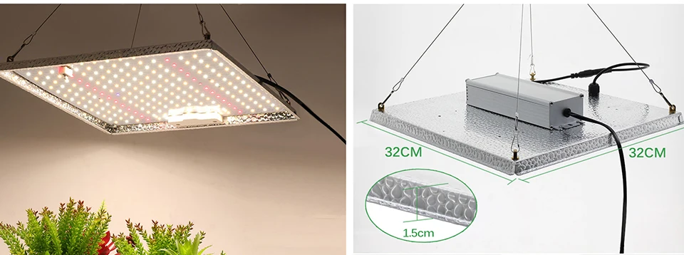 Спектр: 3000K + 5000K + 660NM + 730NM3000K: теплый белый5000K: холодный белый660нм: темно-красный730 нм: инфракрасный380нм: УФФактическая мощность: 80-85 ВтРазмер: 300х300х15 ммКомплект с алюминиевым диммируемым Драйвером