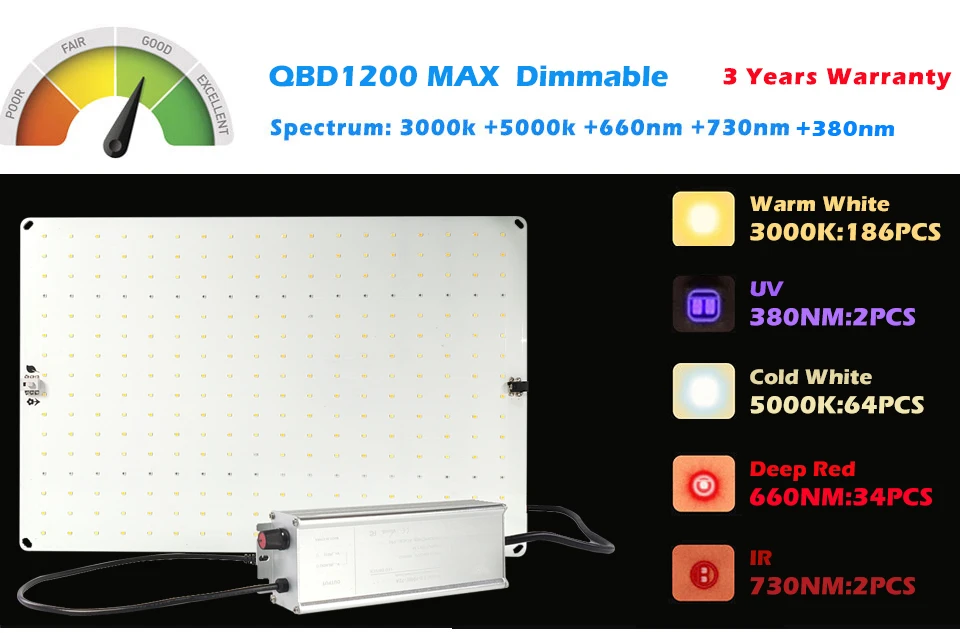 Артикул: QBD1200 MAX (с регулируемой яркостью и переключателем veg/bloom)