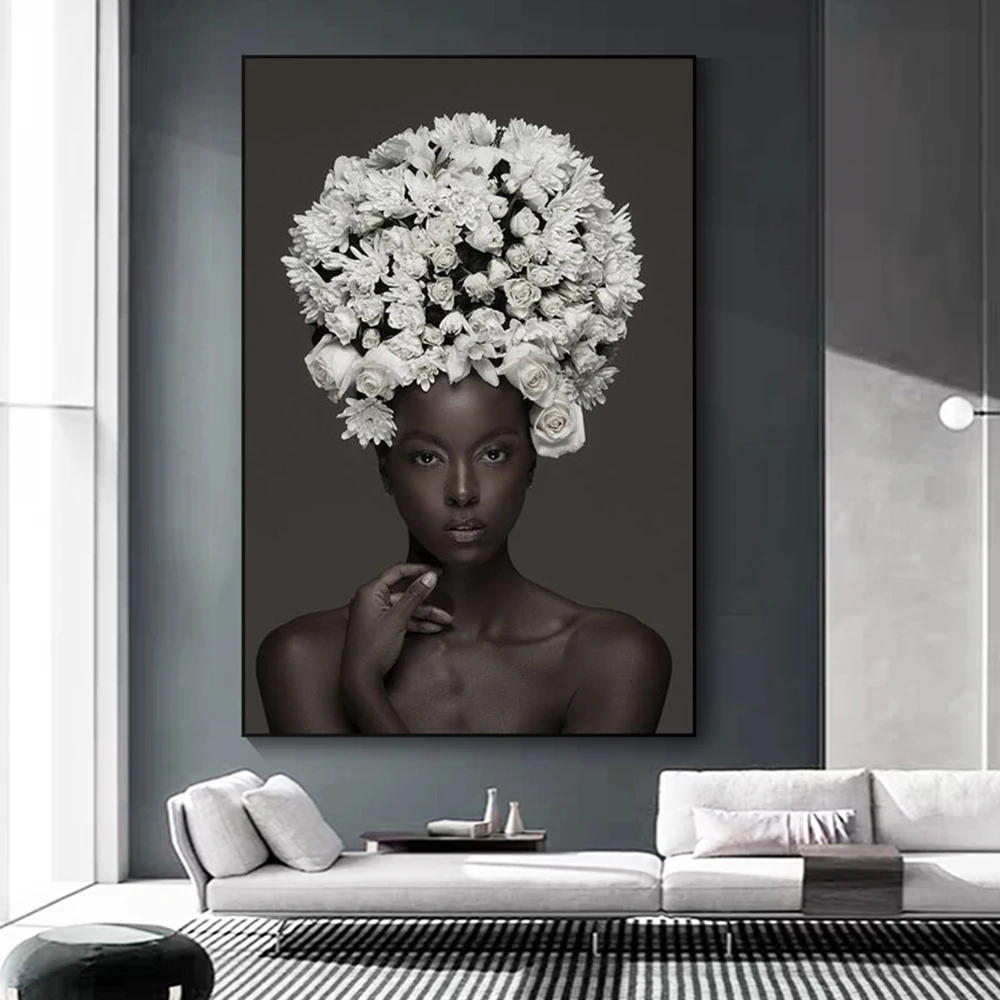 Холст с изображением цветов на голове, настенные картины год, плакаты и принты Африканской женщины, картины в скандинавском стиле, домашний декор для стен, Куадрос