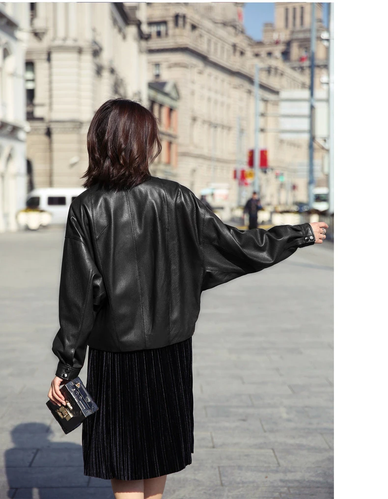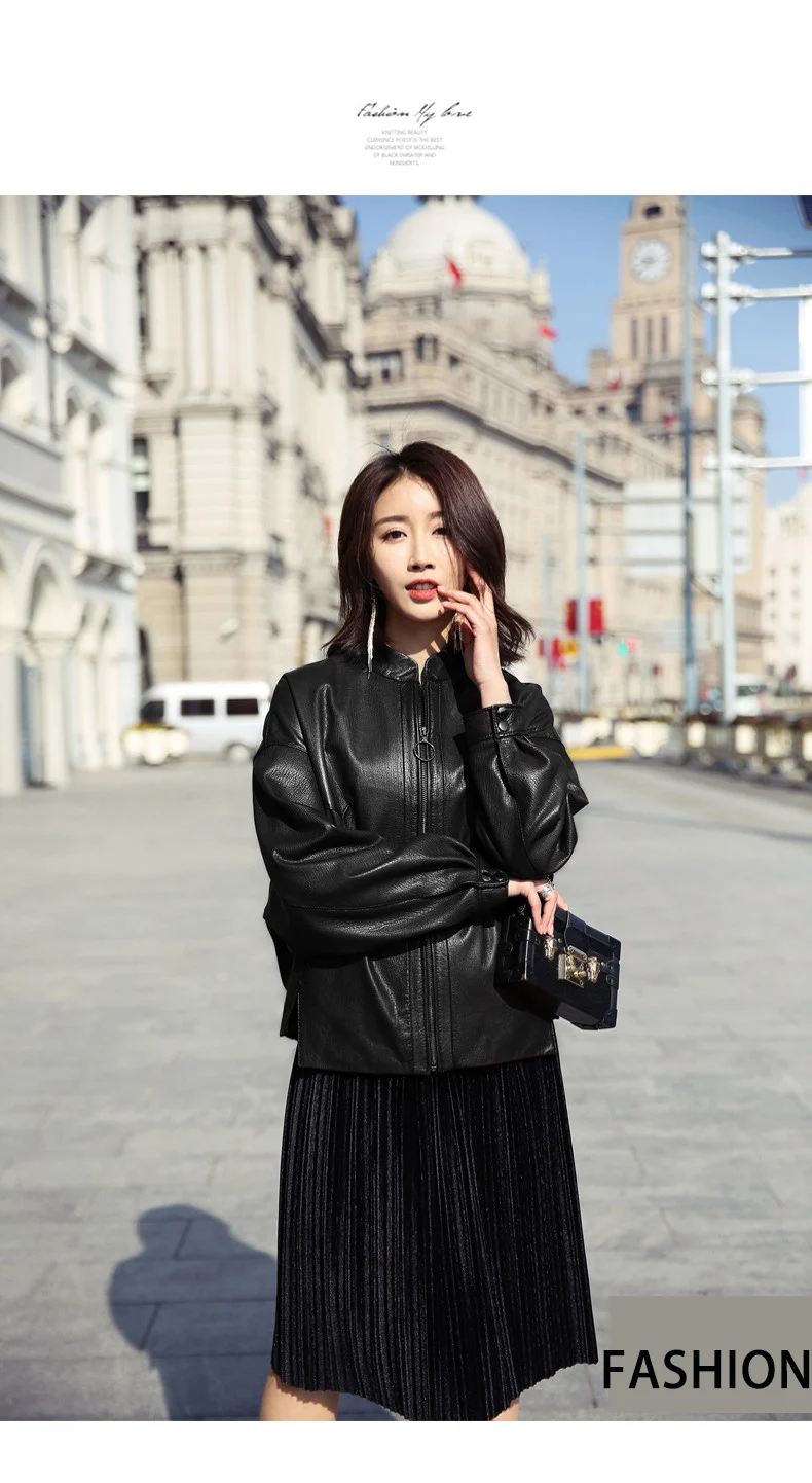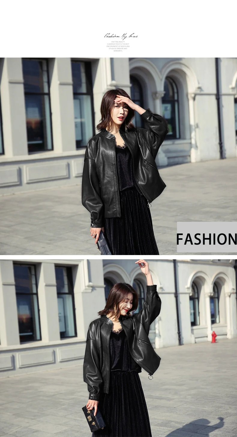 Новинка 2020, осенне-зимние женские куртки Haining из искусственной кожи черного и синего цвета, женская верхняя одежда из искусственной кожи на молнии с карманами, мотоциклетное пальто с поясом