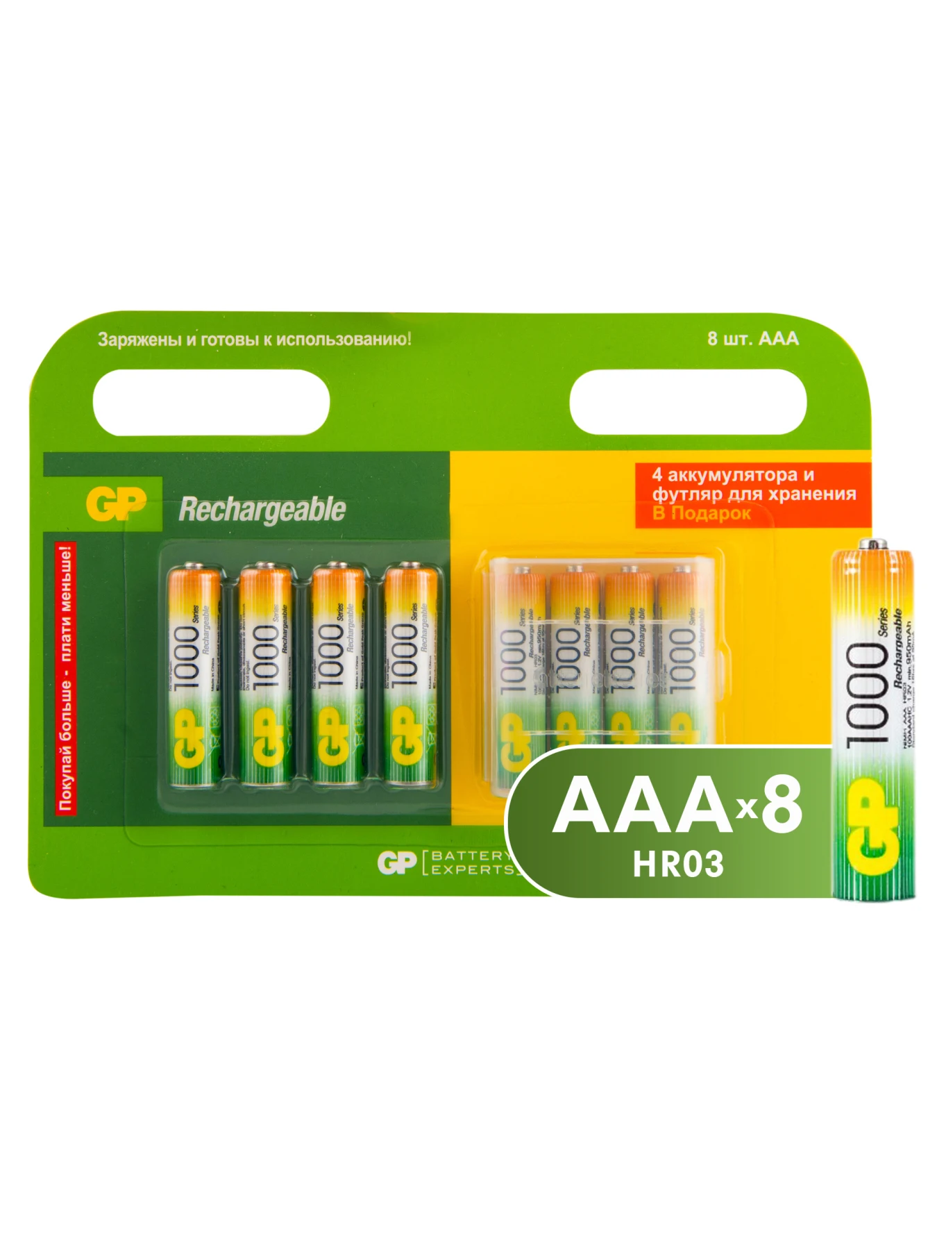 Комплект аккумуляторов GP ААА (HR6), 8 шт в промоупаковке, 4+4 бесплатно (GP 100AAAHC44-2CR8), 1.2 V