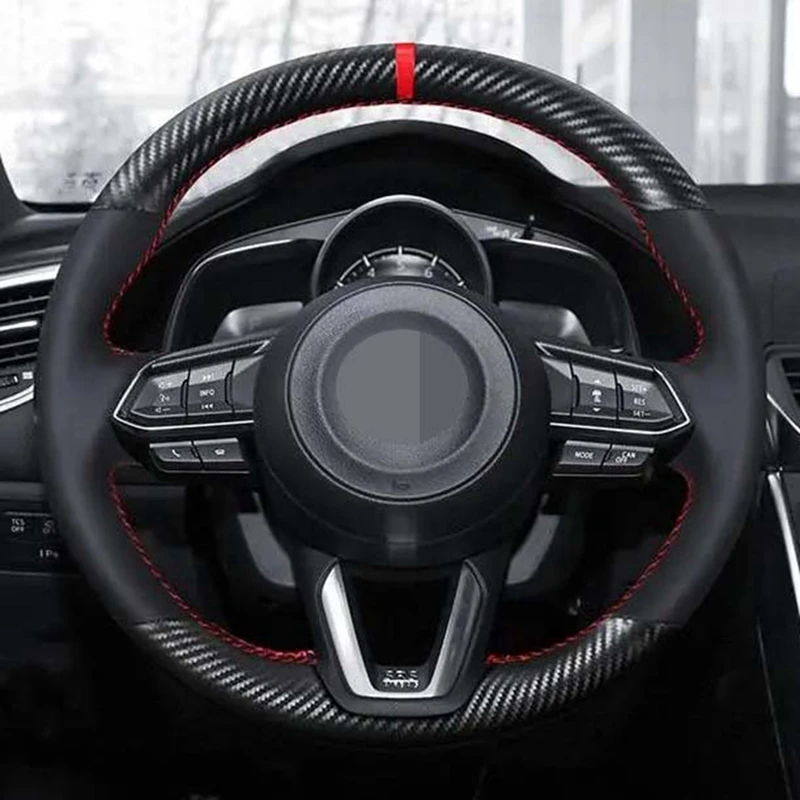 Чехол рулевого колеса автомобиля DIY углеродного волокна кожаная че...