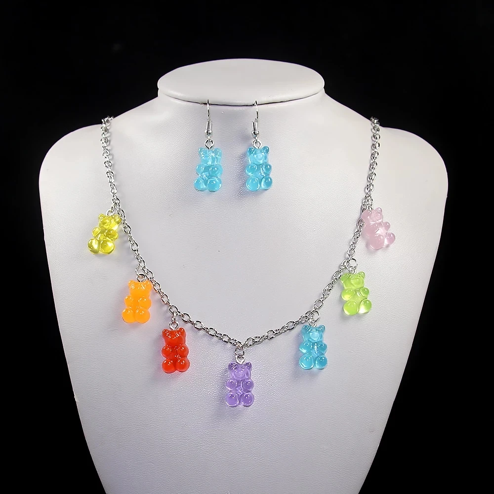 Очаровательный медведь карамельных цветов из нержавеющей стали, цепочка, ожерелье, серьги для женщин и девочек, ежедневные украшения, подарки Вечерние