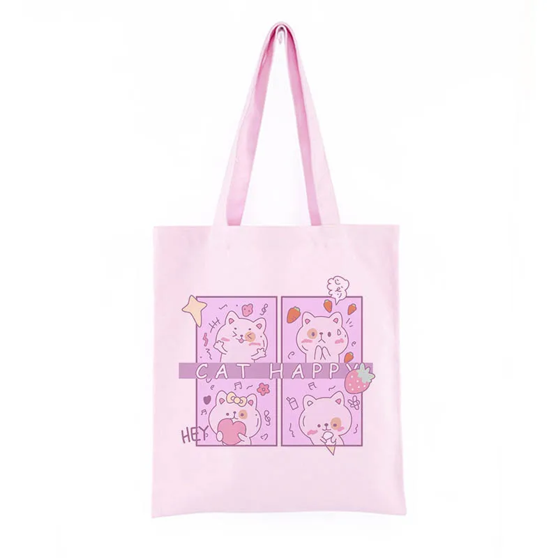 Милая мультяшная Женская Холщовая Сумка kawaii cat, повседневная женская сумка с забавными буквами аниме Harajuku, милая сумка-шоппер Ulzzang, женские сумки на плечо