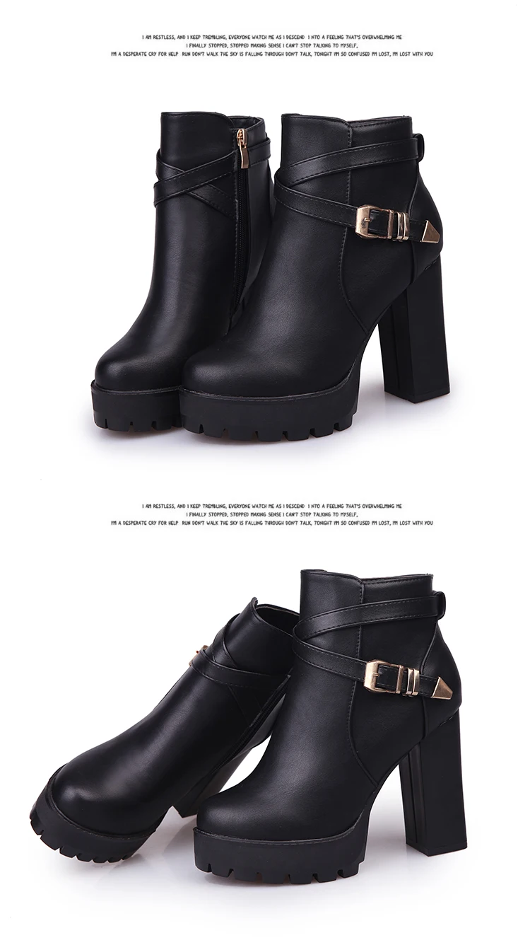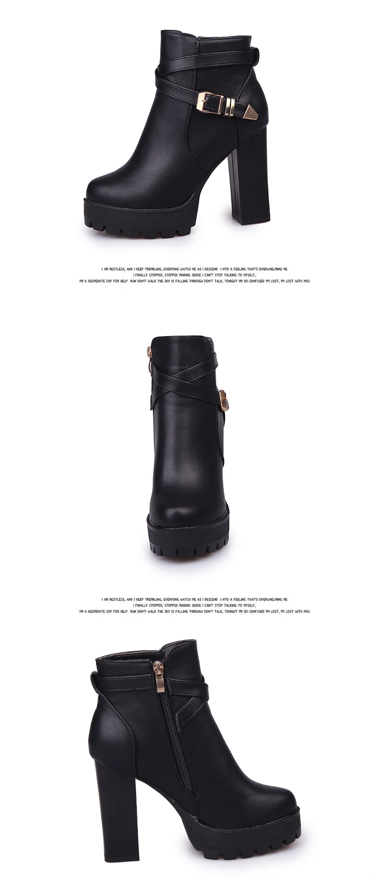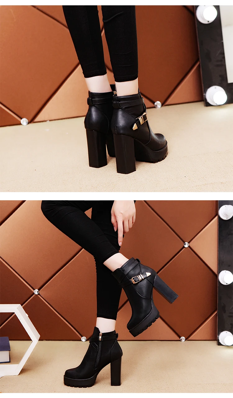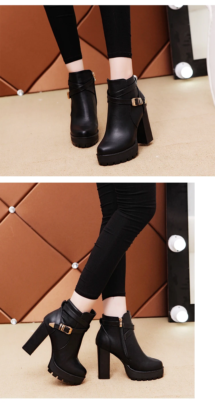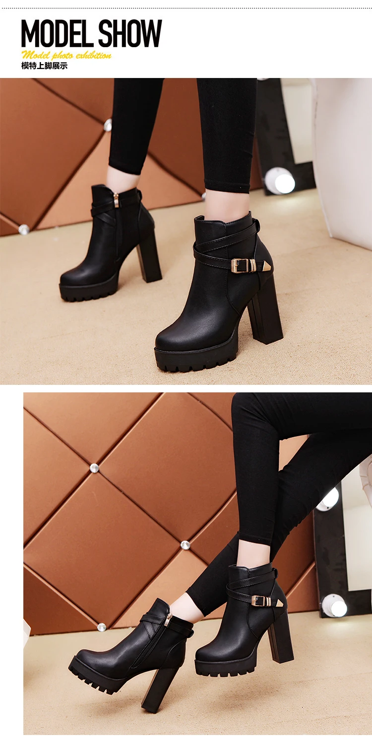 Ботинки женские кожаные, на платформе, с круглым носком, на высоком каблуке, Осень-зима, 2021