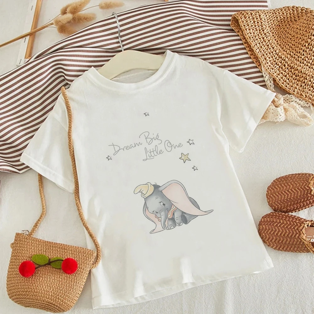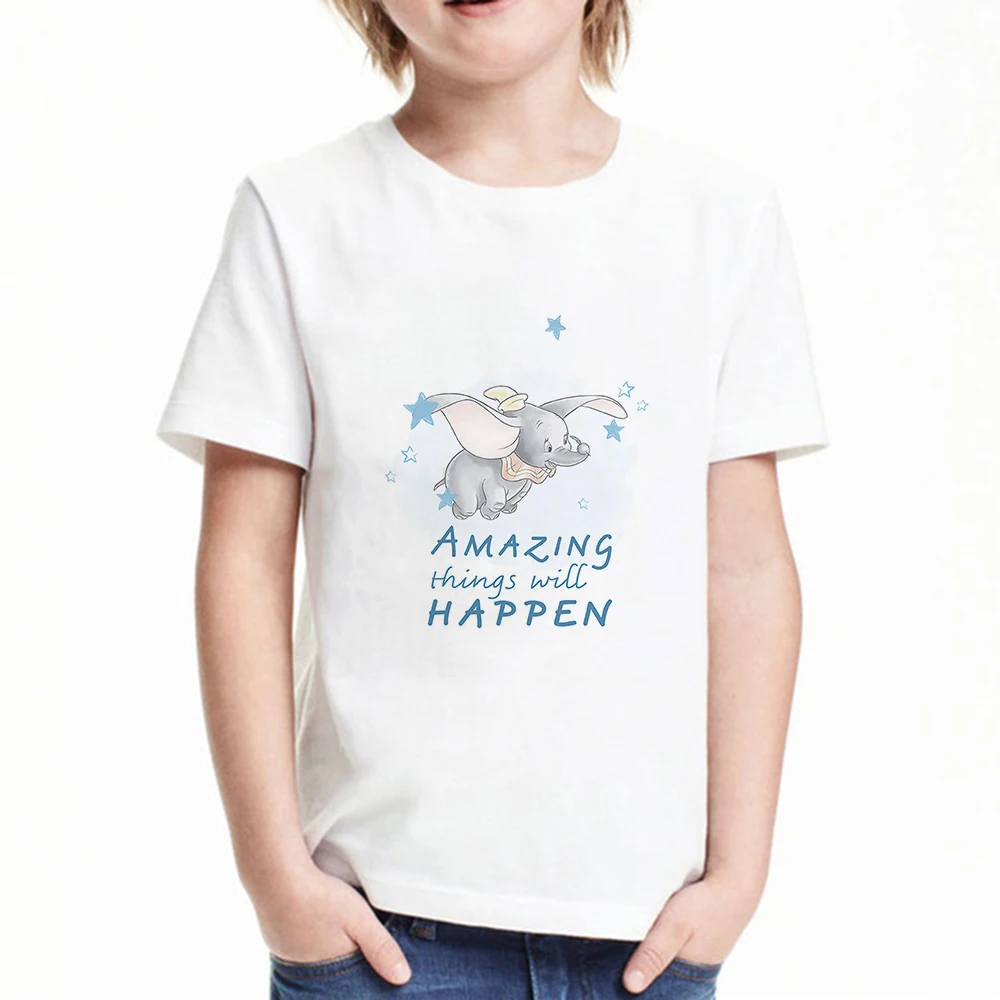 Слон Дамбо футболка с принтом детская свободная футболка для маленьких девочек мальчиков братьев и сестер футболка Disney анимационные фильмы детские топы