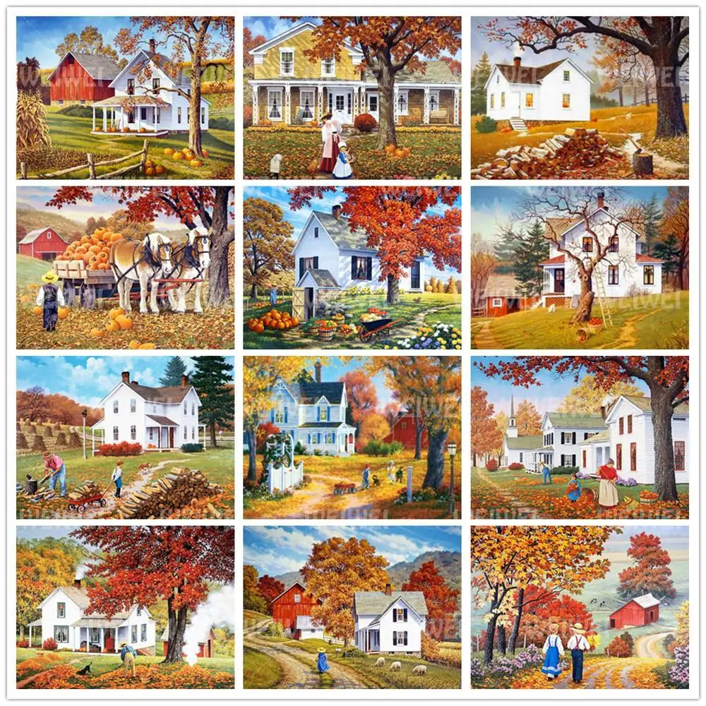 Вышивка крестиком из страз в деревенском стиле для взрослых, вышивка осенним пейзажем, 5D алмазная живопись, полная Алмазная вышивка, круглый квадрат для домашнего декора