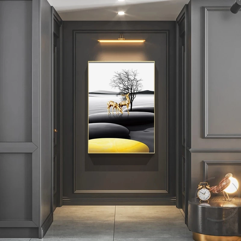 Озеро Пейзаж Wall Art плакат Золотой парусный спорт рисунок оленя на холсте современный Гостиная украшения дома Настенная (без рамки)