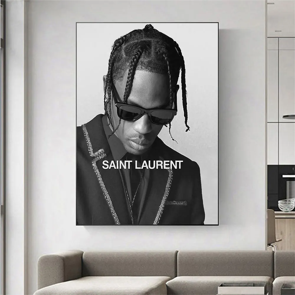 Черно-белый Трэвис Скотт музыкальная звезда рэп хип-хоп модная модель художественная живопись холст HD постер настенный Декор для дома гостиной