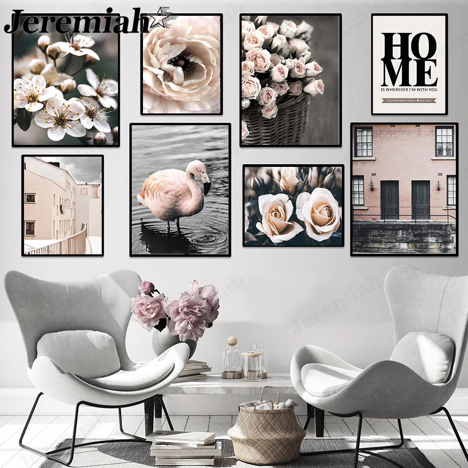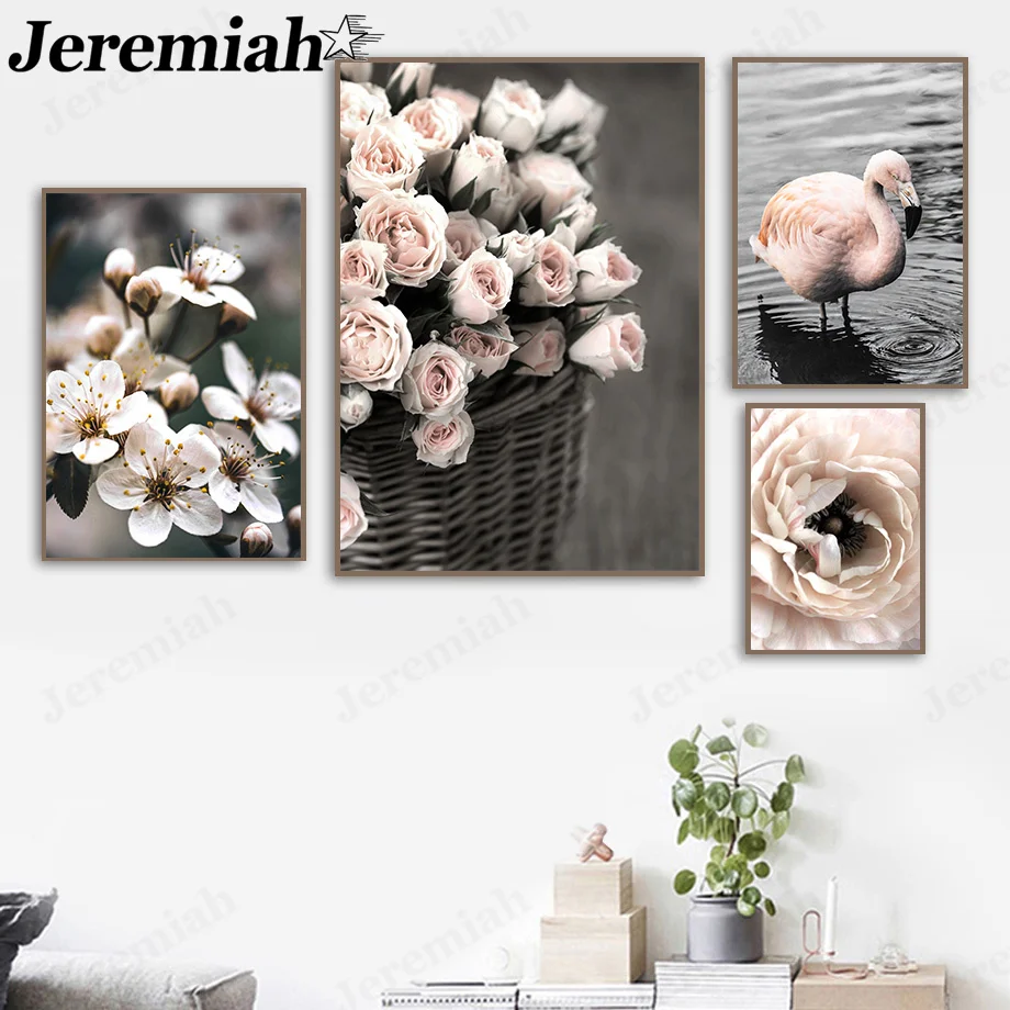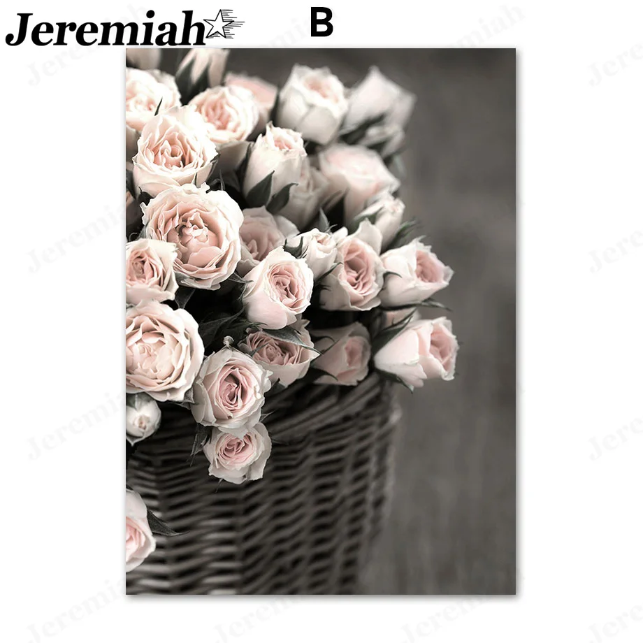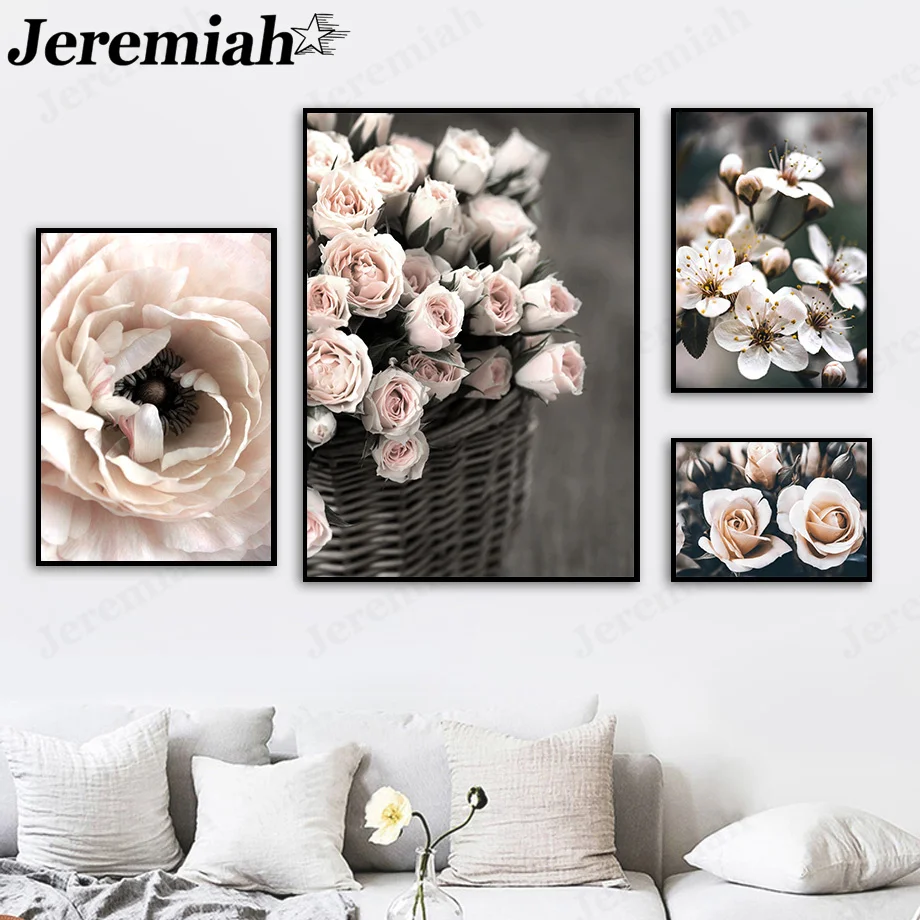 Абстрактный настенный постер, винтажная Картина на холсте с изображением роз, цветков персика, корзины цветов, Современное украшение для интерьера гостиной и дома