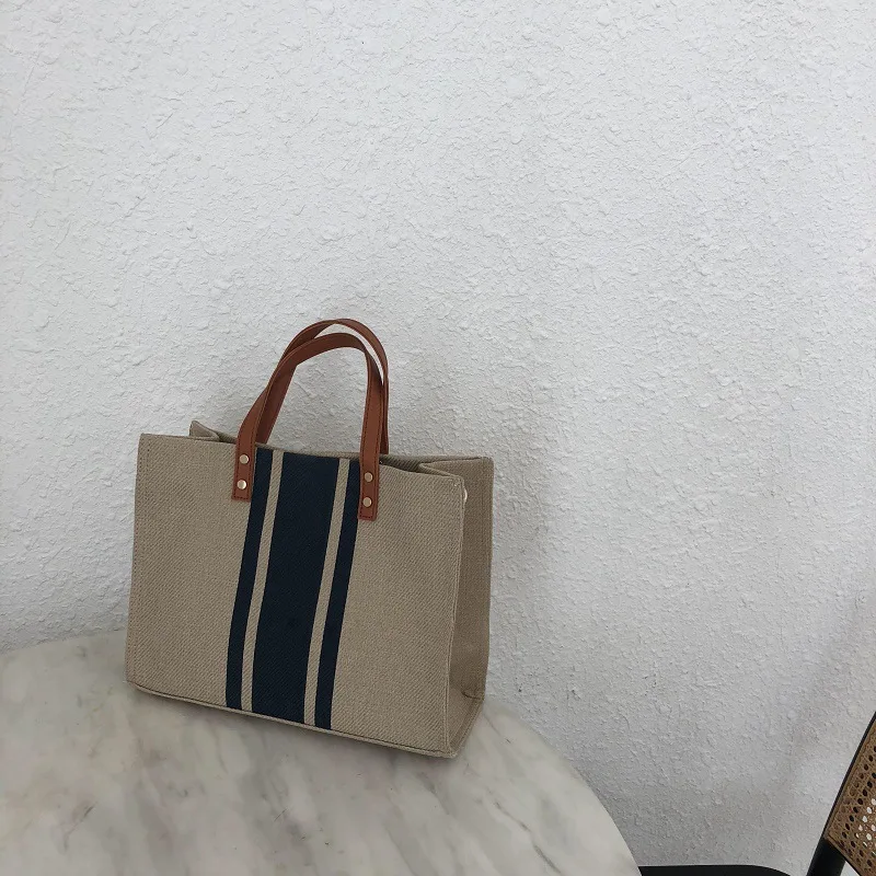 Простая модная Женская Полосатая Холщовая Сумка-тоут, вместительная...