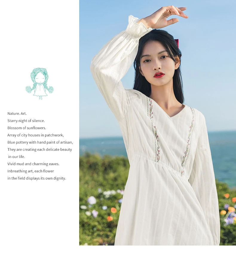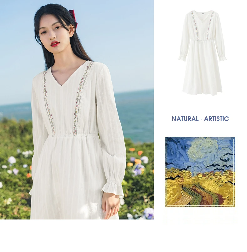 Платье женское весенне-осеннее с V-образным вырезом и длинными рукавами