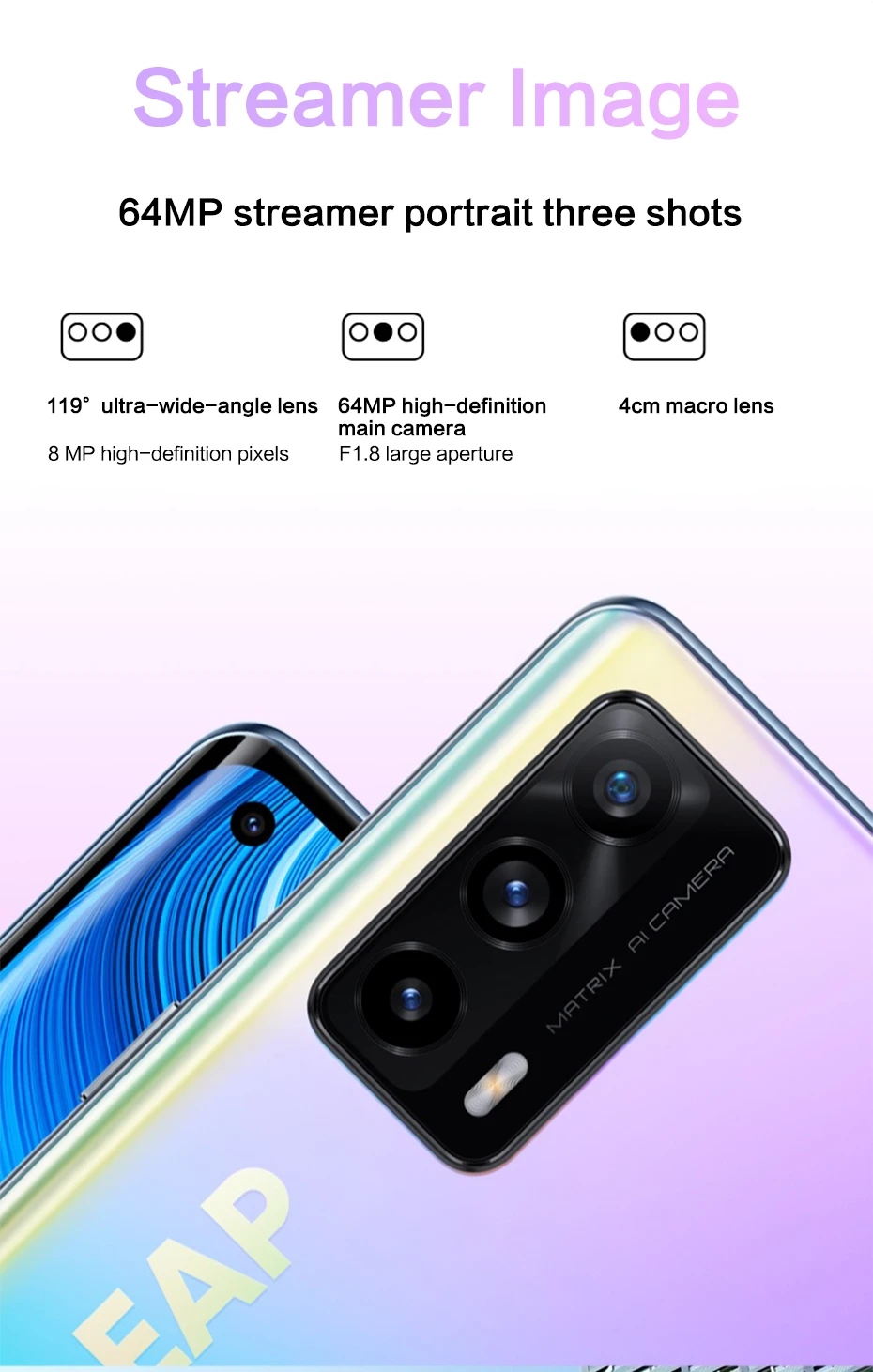 64 MP, f/1,8, 26 мм (широкий), 1/2.0 ",8 Мп, f/2,3, 119 °, 16 мм (ультраширокий), 1/4.0 ",2 MP, f/2,4, (Макро)